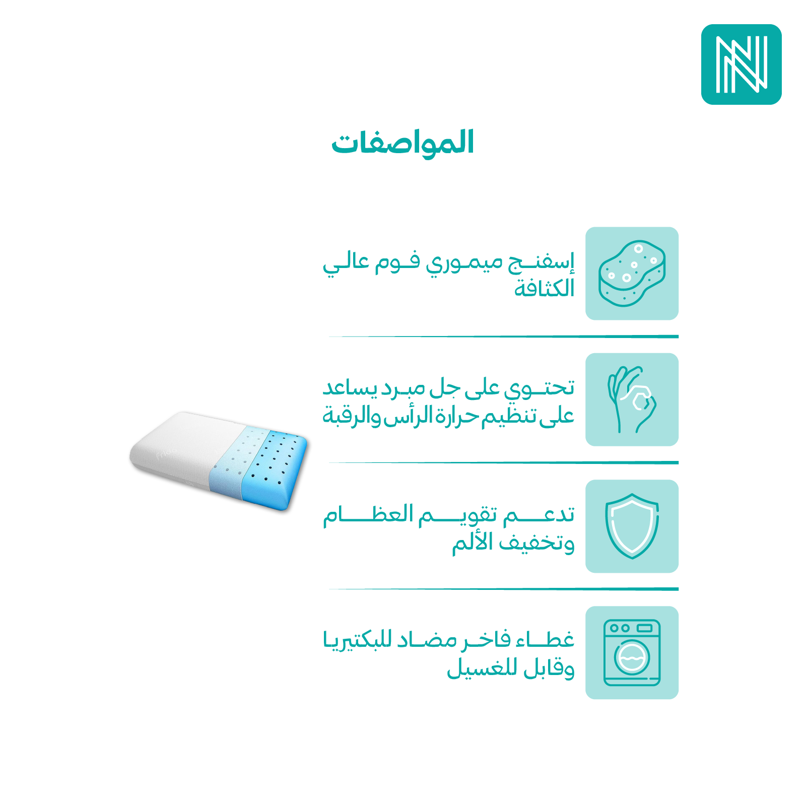 - تقنية الجل المبرد: تمنح إحساسًا لطيفًا بالبرودة وتساعد في تنظيم درجة حرارة الرأس والرقبة أثناء النوم.