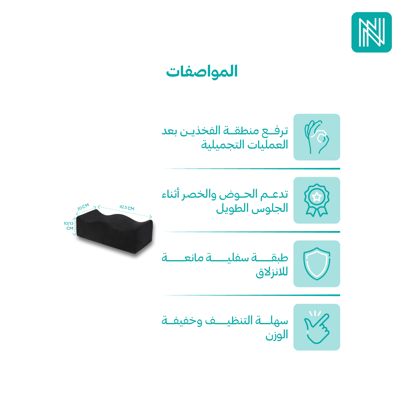 3- استخدم الوسادة خلال الجلوس لفترات طويلة أو أثناء التعافي بعد العمليات التجميلية.