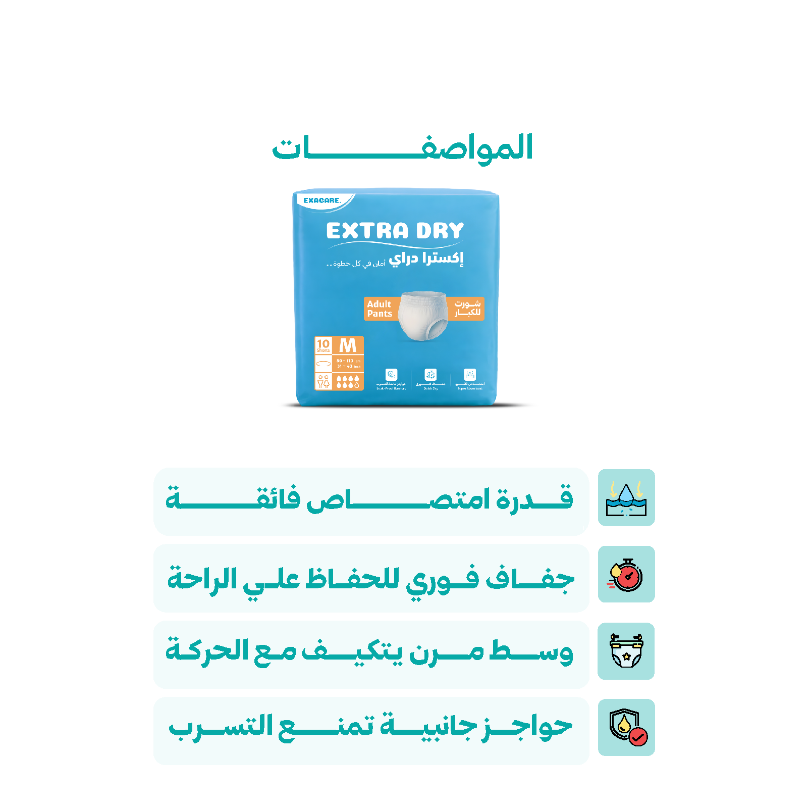 استمتع براحة وثقة أكبر مع حفاضات كبار السن عالية الامتصاص، المصممة لتوفير حماية فعالة من التسرب وجفاف يدوم طوال اليوم.