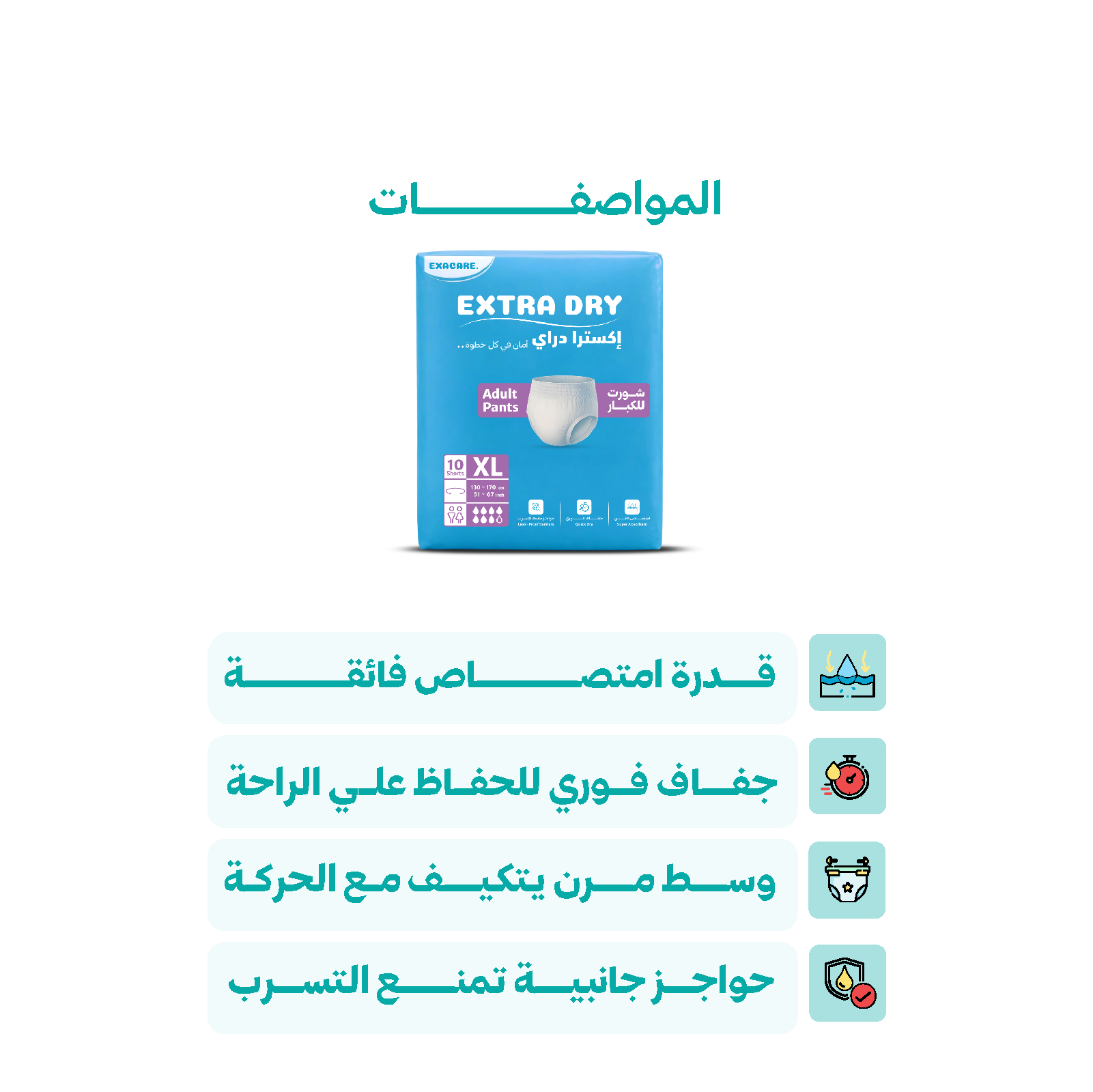 استمتع براحة وثقة أكبر مع حفاضات كبار السن عالية الامتصاص، المصممة لتوفير حماية فعالة من التسرب وجفاف يدوم طوال اليوم.