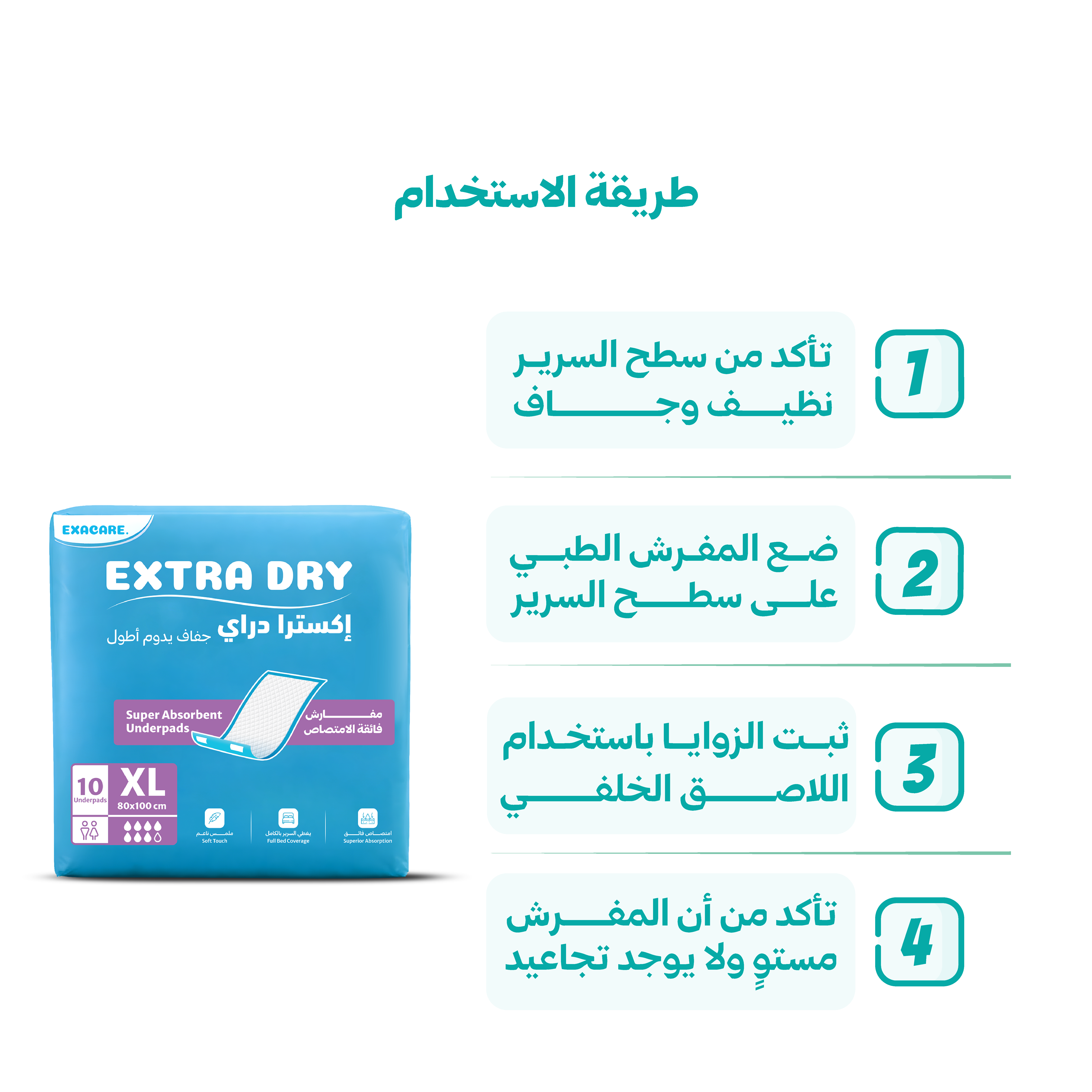 يُرجى التخلص من المفرش بعد الاستخدام وعدم إعادة استخدامه للحفاظ على النظافة والصحة.