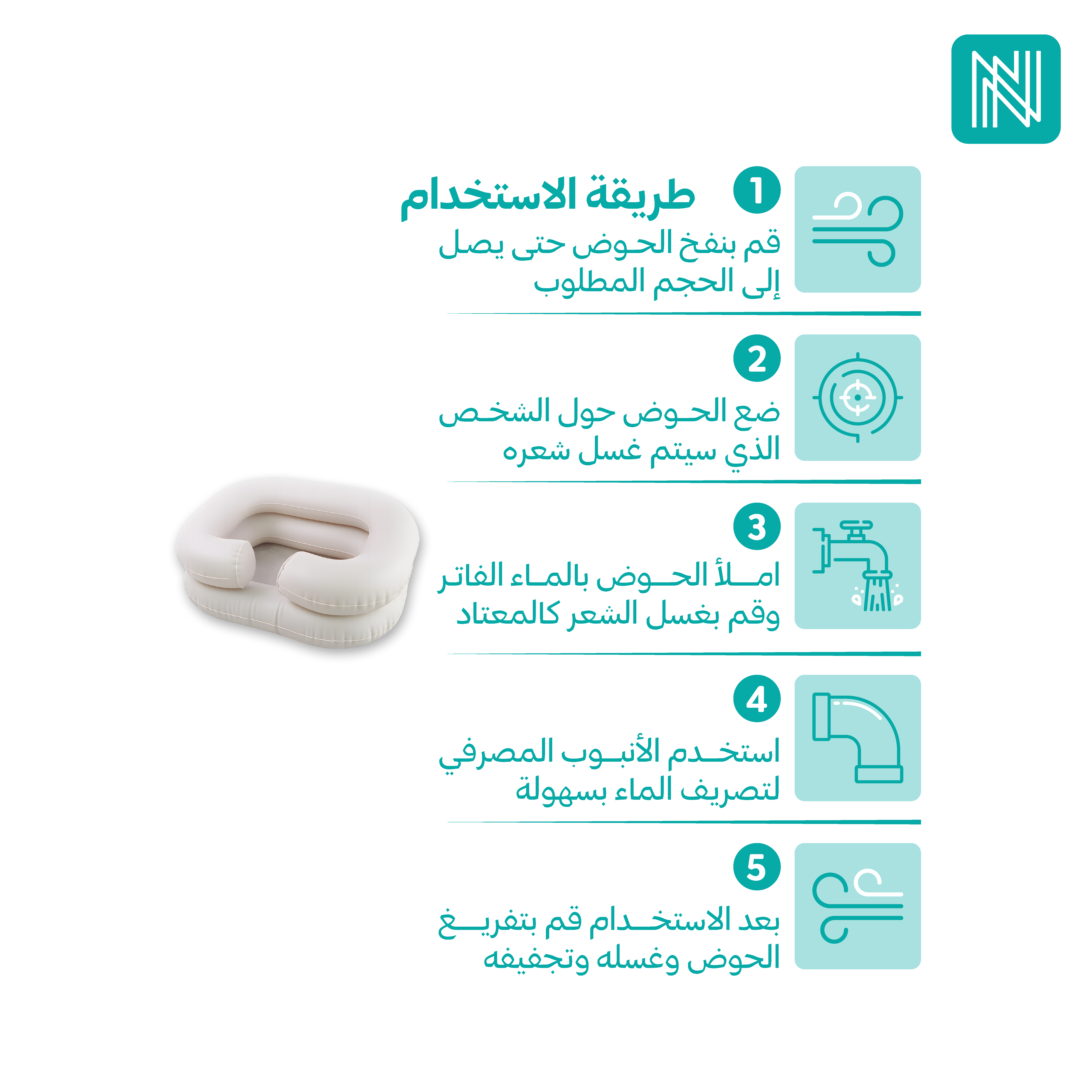 حوض محمول مصمم خصيصًا للمرضى الذين يضطرون للبقاء في الفراش، وكبار السن، ولمقدمي الرعاية. يوفر هذا الحوض حلاً مثاليًا لغسل الشعر بفعالية وسهولة دون الحاجة إلى الحركة.
