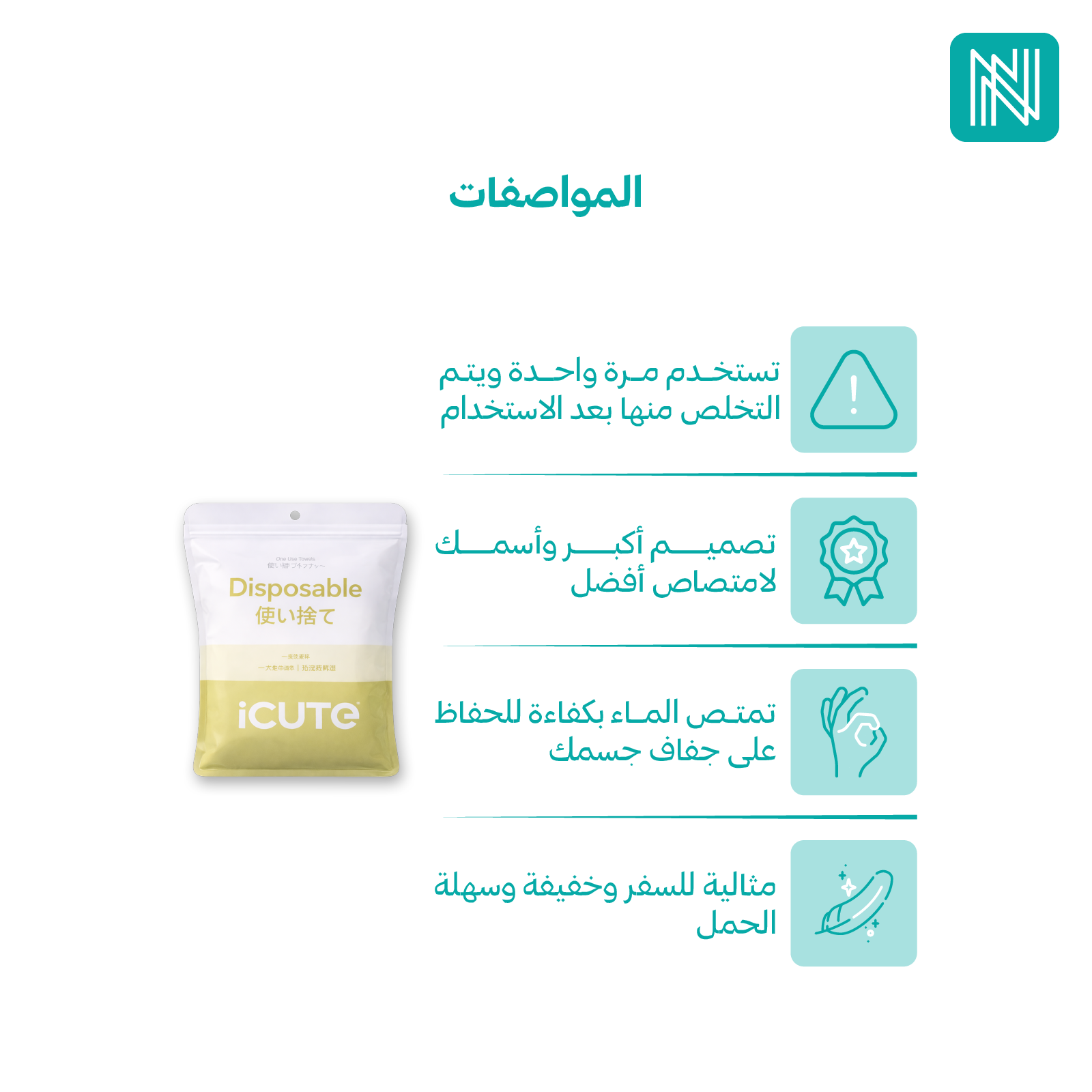 احصل على تجفيف فوري للجسم والوجه مع فوط الاستحدام مرة واحدة التي تحميك من العدوى ومعك في كل مكان.