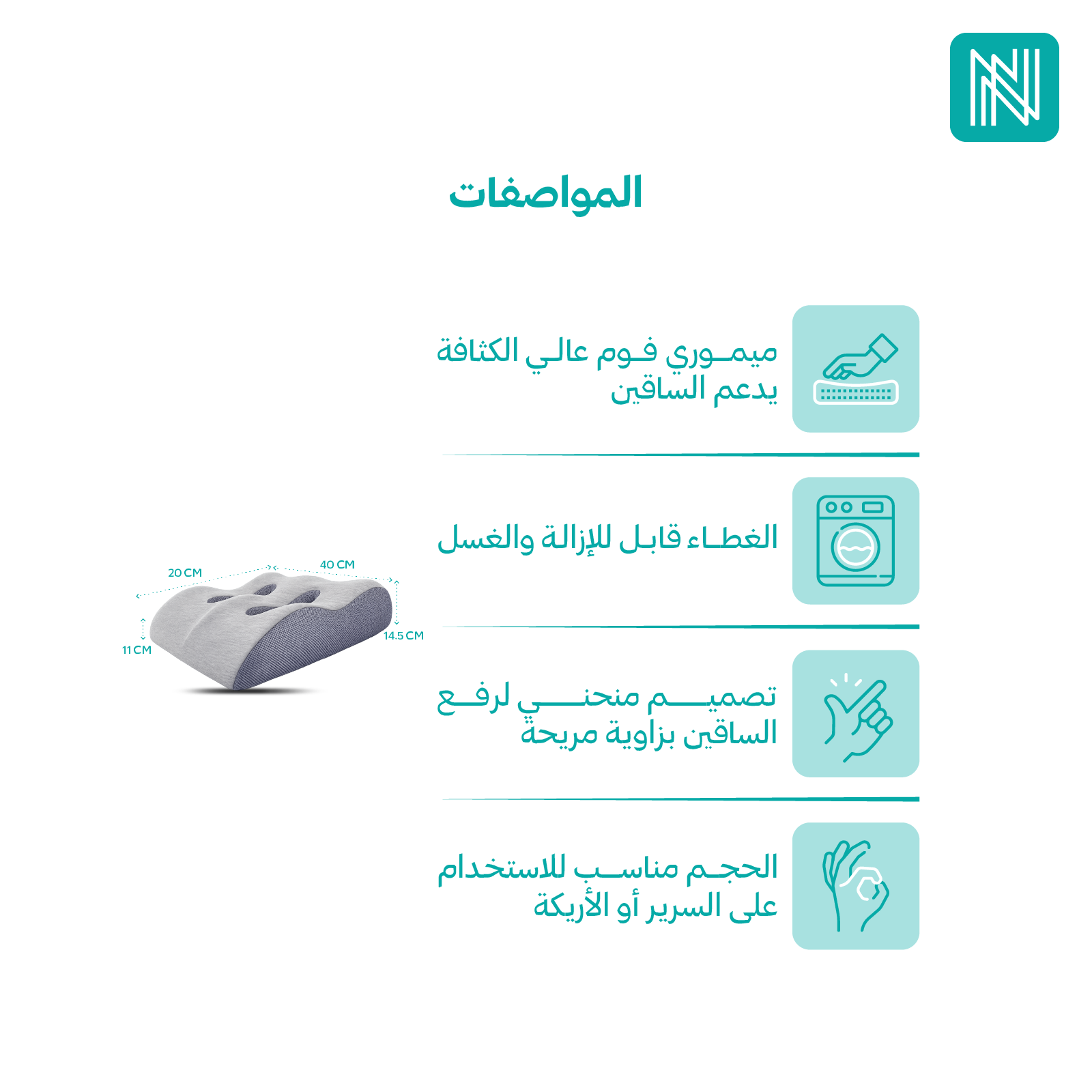 - الخامة: ميموري فوم عالي الكثافة