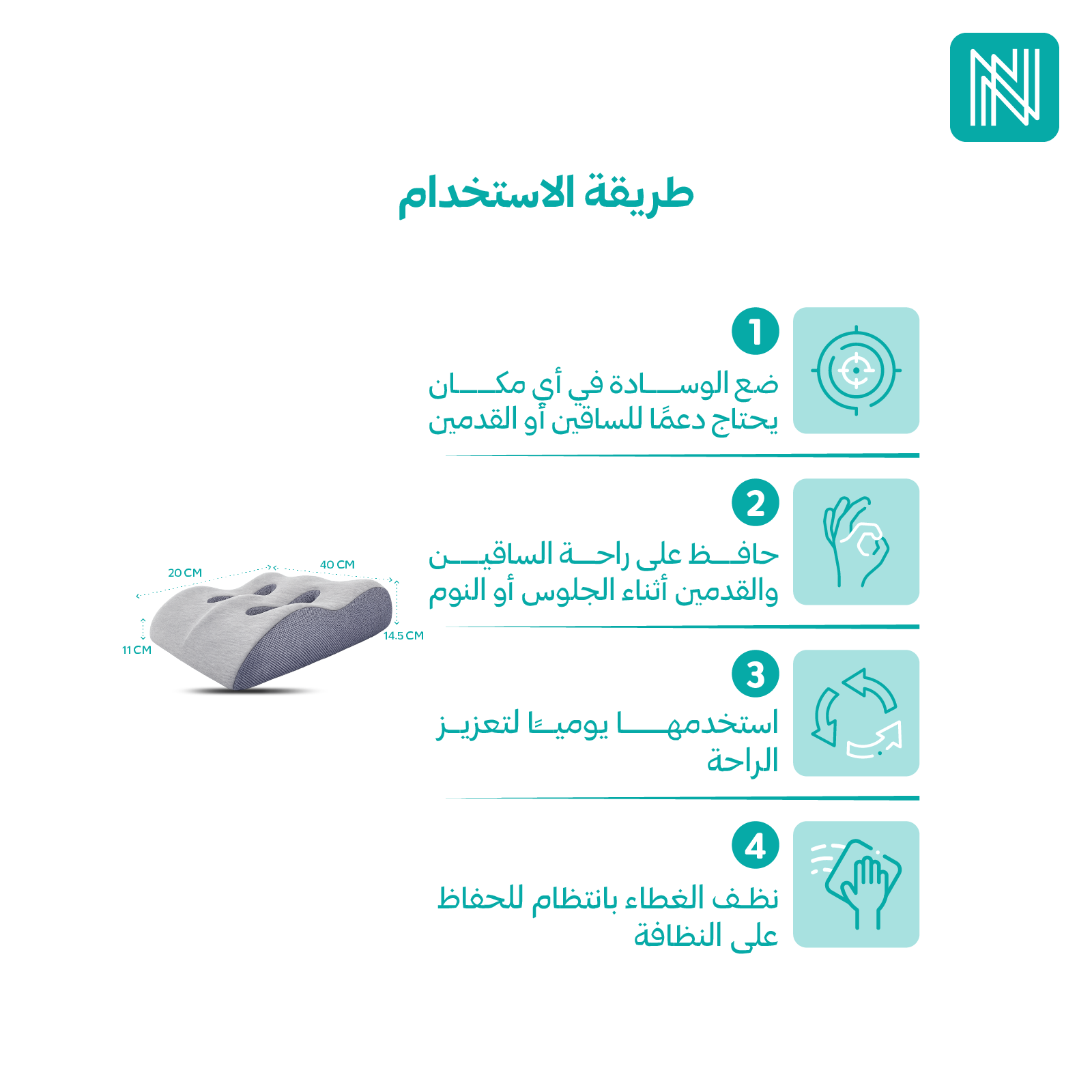 3- استخدمها أثناء النوم أو الراحة للحصول على أفضل دعم.