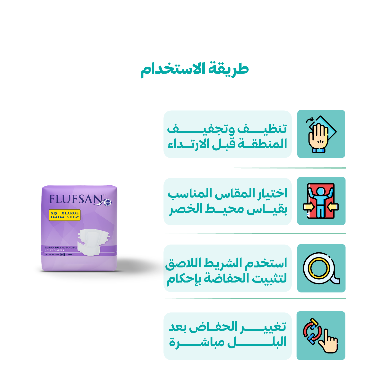 - مرونة في الارتداء: تم تصميم حفاضات فلوفسان بمرونة عالية في الارتداء، مما يوفر حلاً ملائمًا ومريحًا يتكيف مع شكل الجسم وحركته الطبيعية.