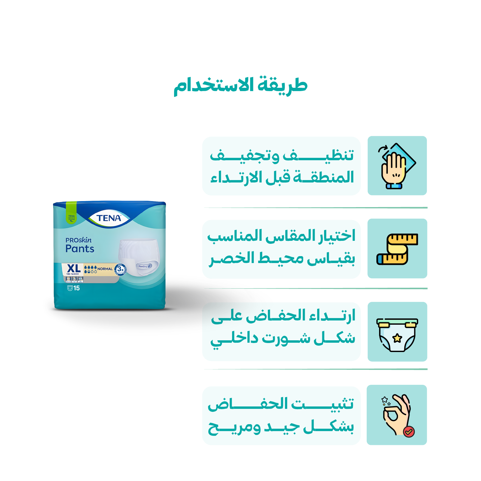 2- تأكد من اختيار المقاس المناسب للحفاض الشورت، وذلك بقياس محيط الخصر ومقارنته بجدول المقاسات المتاح.