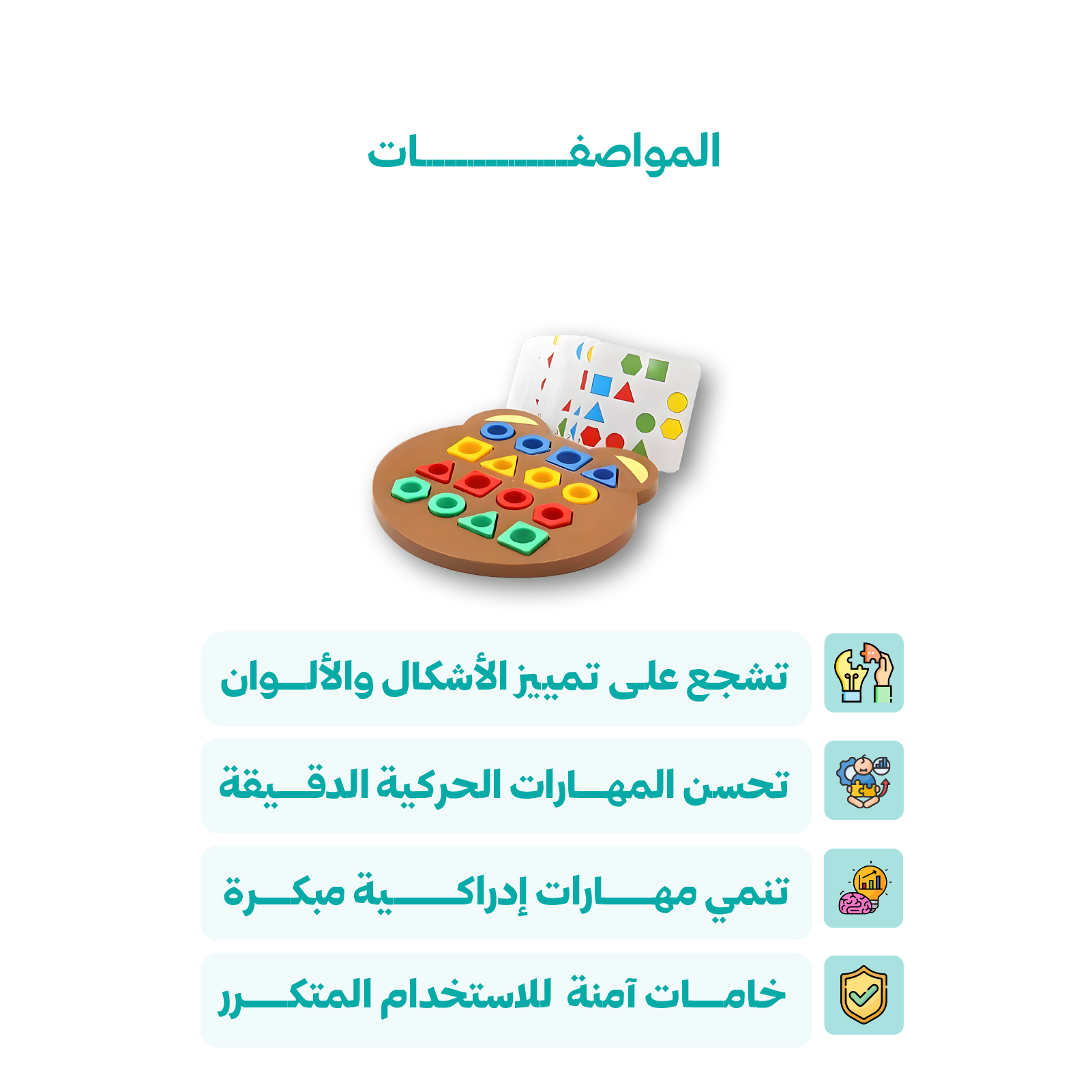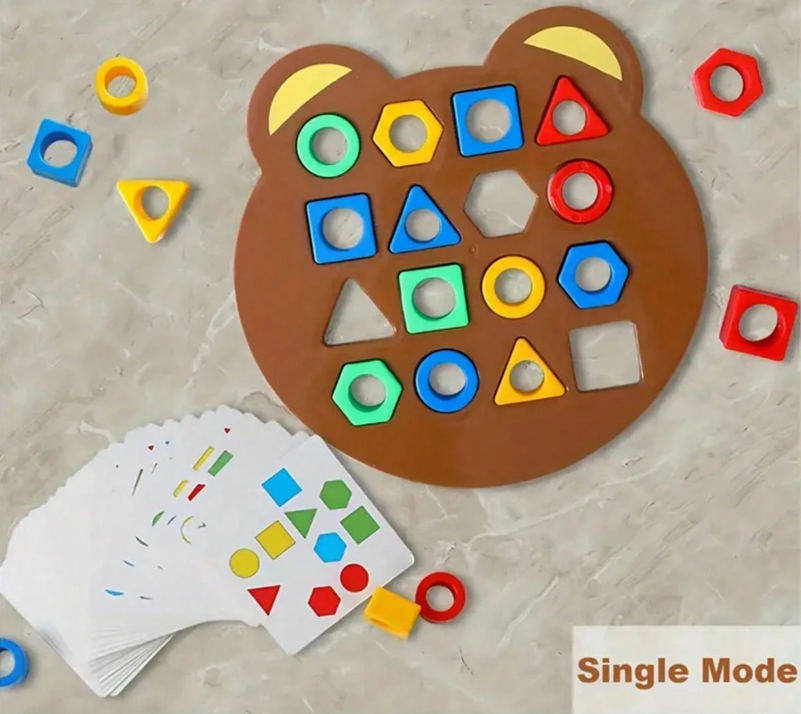 لعبة تعليمية وترفيهية على شكل بازل مكتبي حيث يطابق الأطفال أشكال هندسية في لعبة مطابقة. تساعد على تنمية مهارات تمييز الأشكال و الألوان بطريقة مرحة وتفاعلية.
