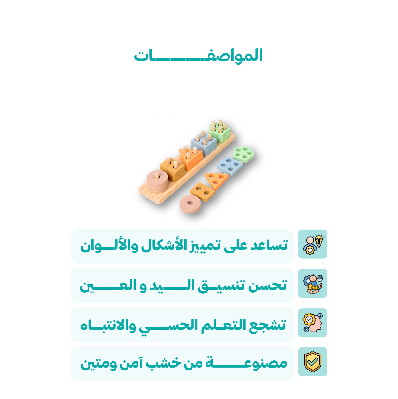 - مصنوعة من خشب آمن ومتين، مناسبة للاستخدام المتكرر في المنزل أو الروضة أو الحضانة.