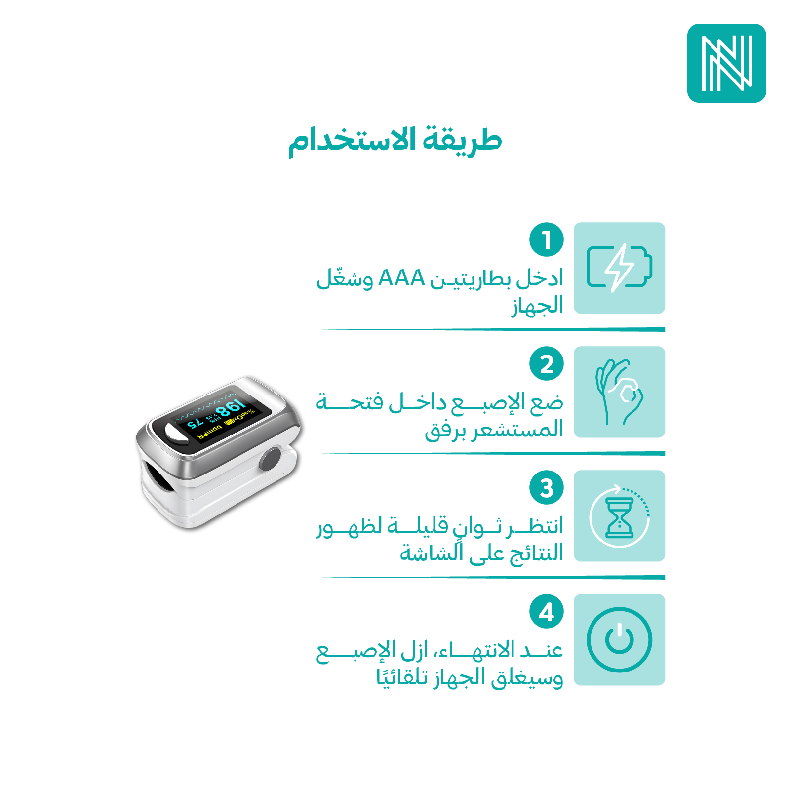 4- عند الانتهاء، أزل الإصبع وسيغلق الجهاز تلقائيًا.