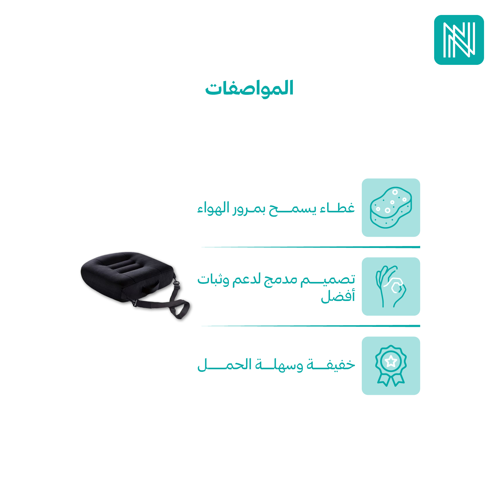- حزام أمان مدمج: يضمن ثبات الوسادة أثناء الاستخدام ويزيد من الأمان.