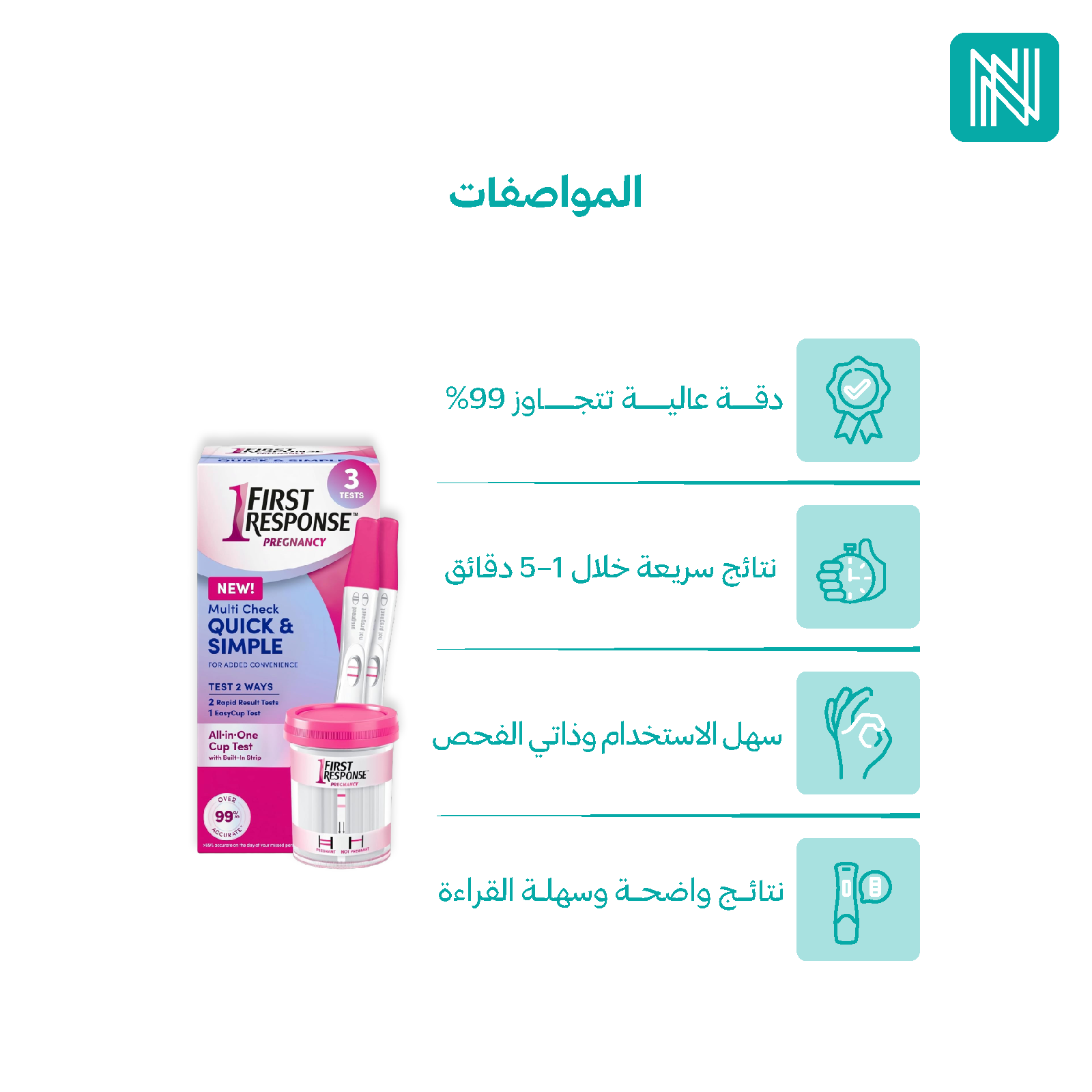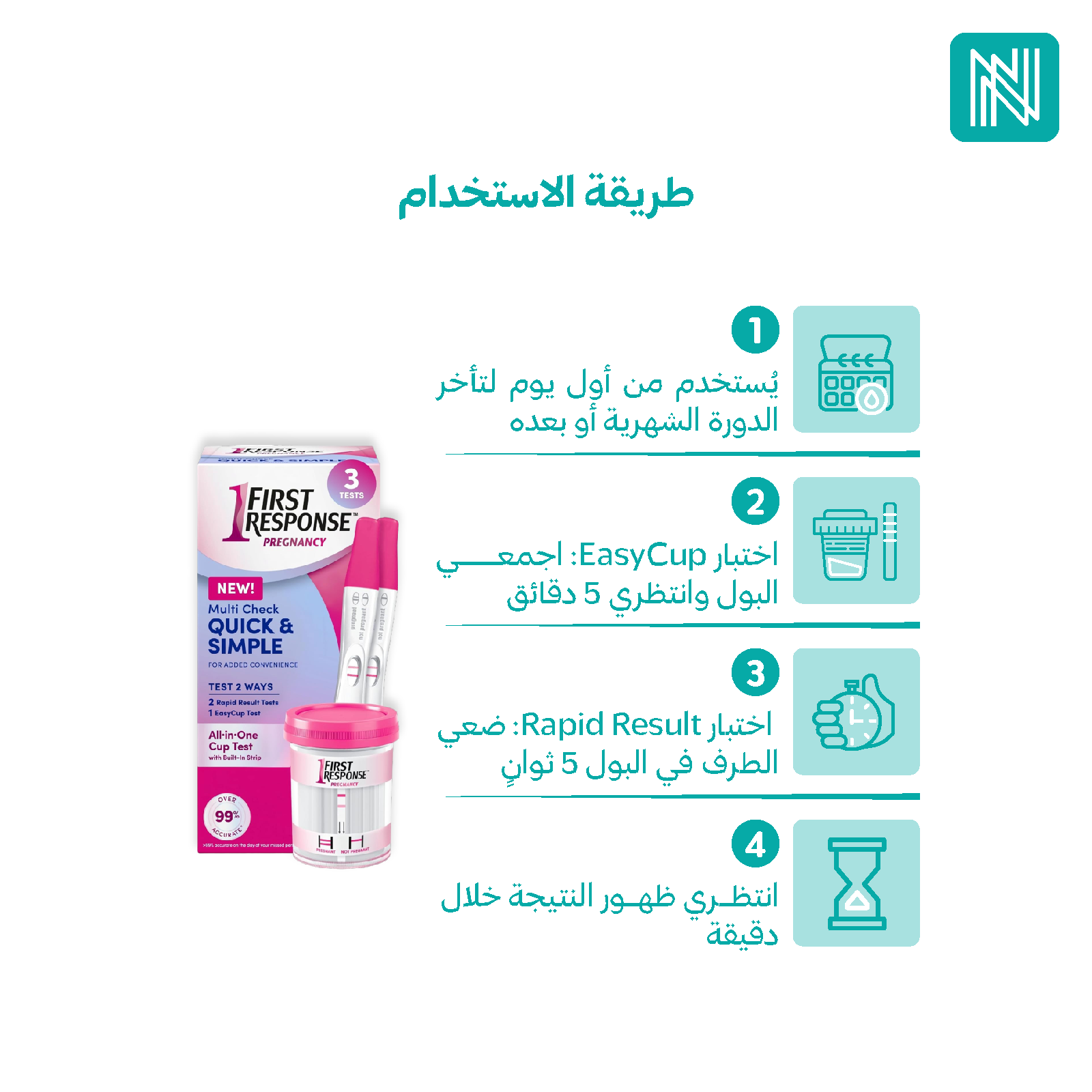 مجموعة اختبار حمل سهلة الاستخدام ودقيقة تمنحكِ نتائج سريعة وواضحة للاطمئنان بثقة.