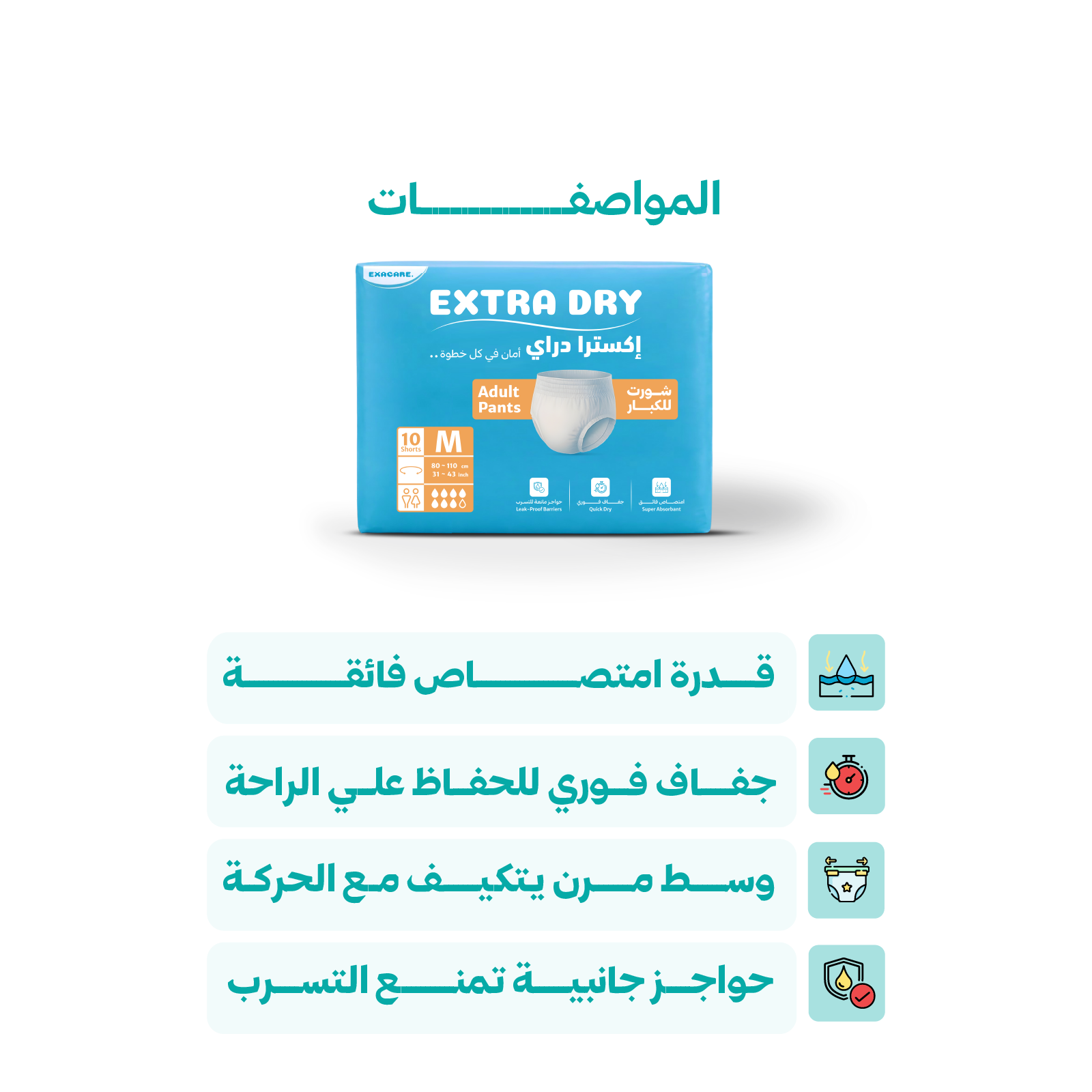 استمتع براحة وثقة أكبر مع حفاضات كبار السن عالية الامتصاص، المصممة لتوفير حماية فعالة من التسرب وجفاف يدوم طوال اليوم.
