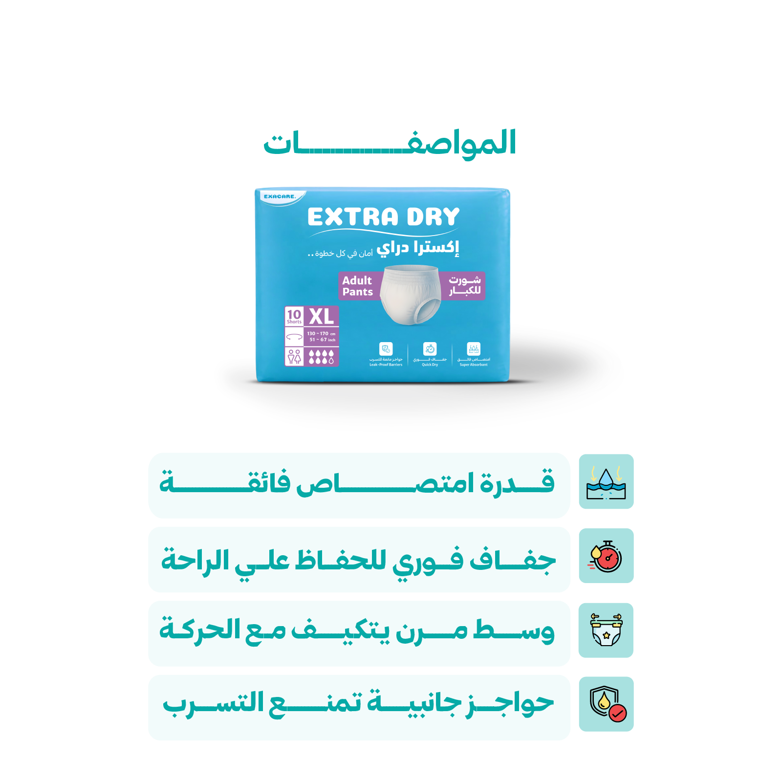 استمتع براحة وثقة أكبر مع حفاضات كبار السن عالية الامتصاص، المصممة لتوفير حماية فعالة من التسرب وجفاف يدوم طوال اليوم.