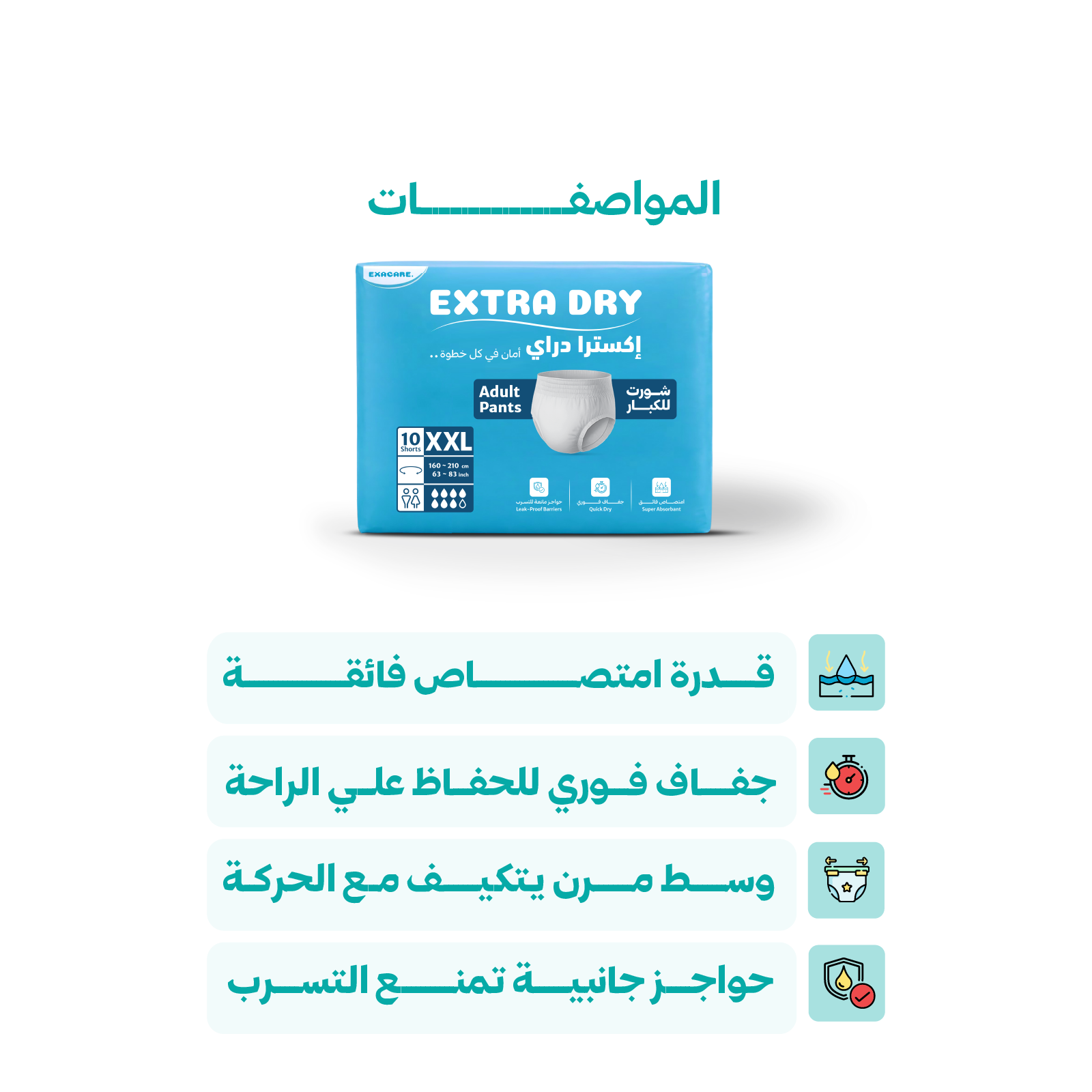 استمتع براحة وثقة أكبر مع حفاضات كبار السن عالية الامتصاص، المصممة لتوفير حماية فعالة من التسرب وجفاف يدوم طوال اليوم.
