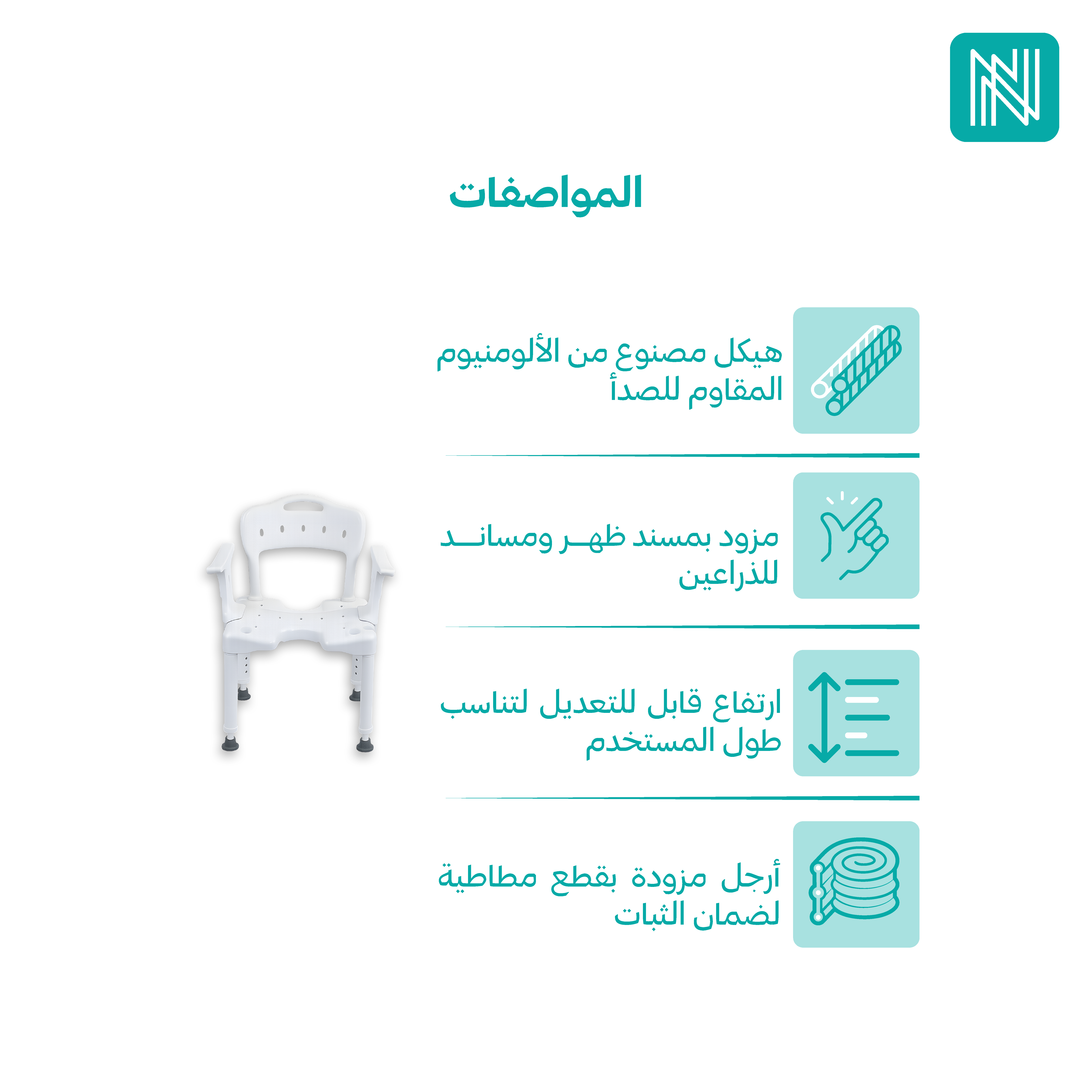 كرسي استحمام طبي مصمم لتوفير أقصى درجات الأمان والراحة لكبار السن وذوي الاحتياجات الخاصة أثناء الاستحمام، مما يقلل من خطر الانزلاق ويوفر استقلالية أكبر.