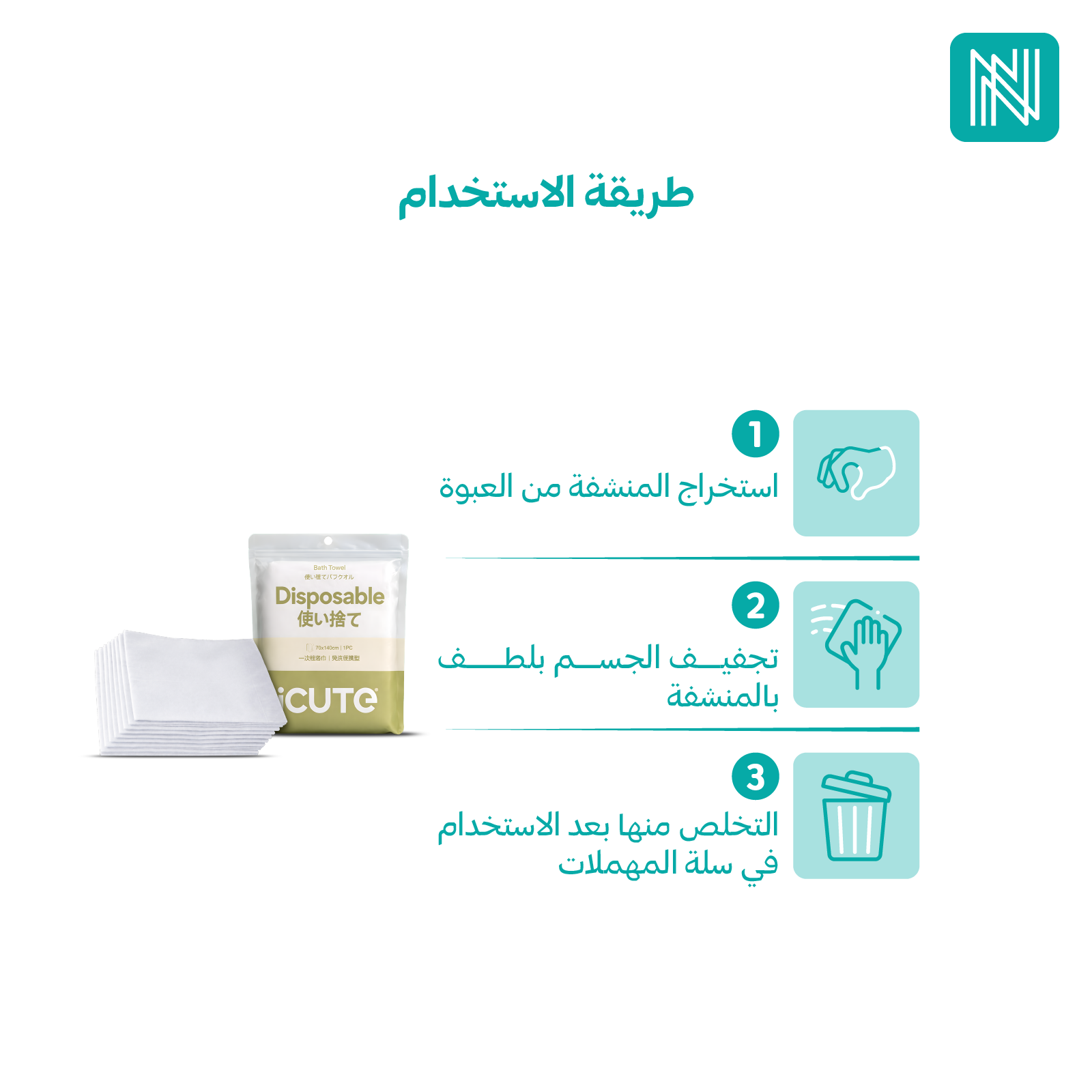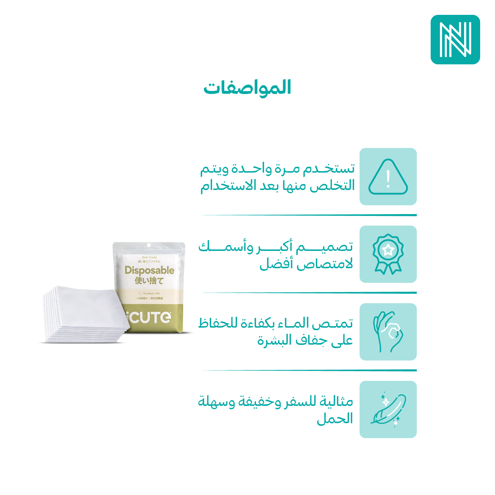 احصل على تجفيف فوري للجسم والوجه مع فوط الاستحدام مرة واحدة التي تحميك من العدوى ومعك في كل مكان.