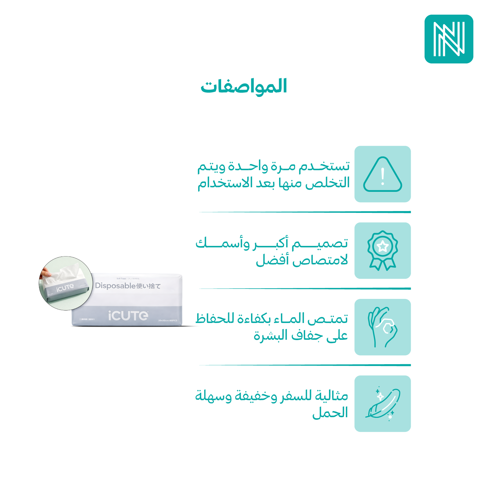 فوط للاستخدام مرة واحدة 20*20 سم - اي كيوت