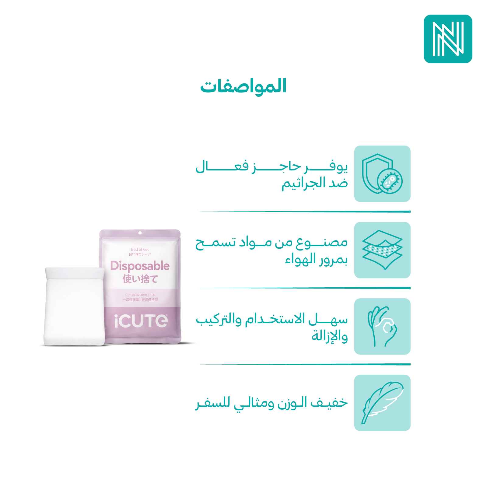 - ملمس خفيف ومريح يشبه الملائة.