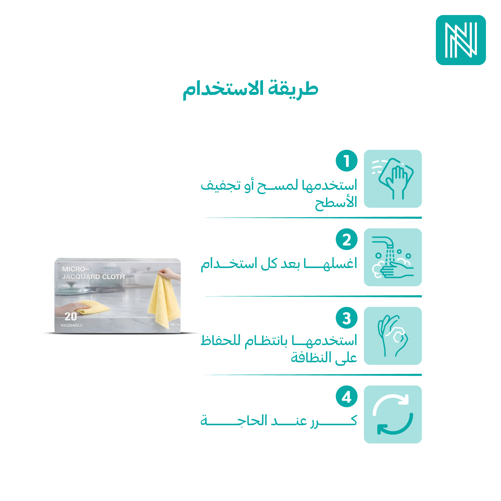 3- كرري الاستخدام حسب الحاجة لضمان تنظيف مثالي.