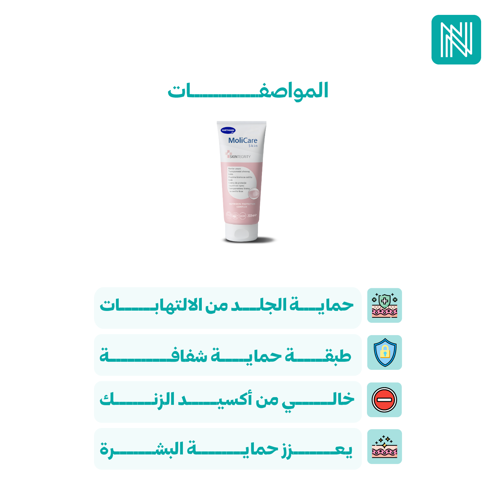 - الحفاظ على ترطيب البشرة ومنع الجفاف الناتج عن الاحتكاك أو الرطوبة الزائدة.