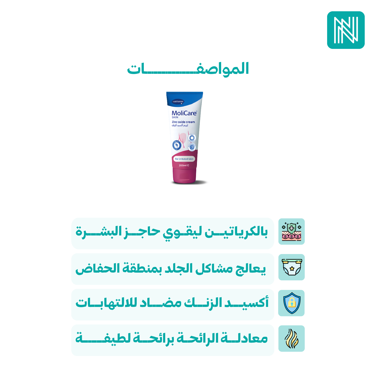 كريم الحفاض من مولي كير بأكسيد الزنك مثالي لعلاج الالتهابات الجلدية المرتبطة بالحفاضات، مثل الاحتكاك أو احمرار الجلد.