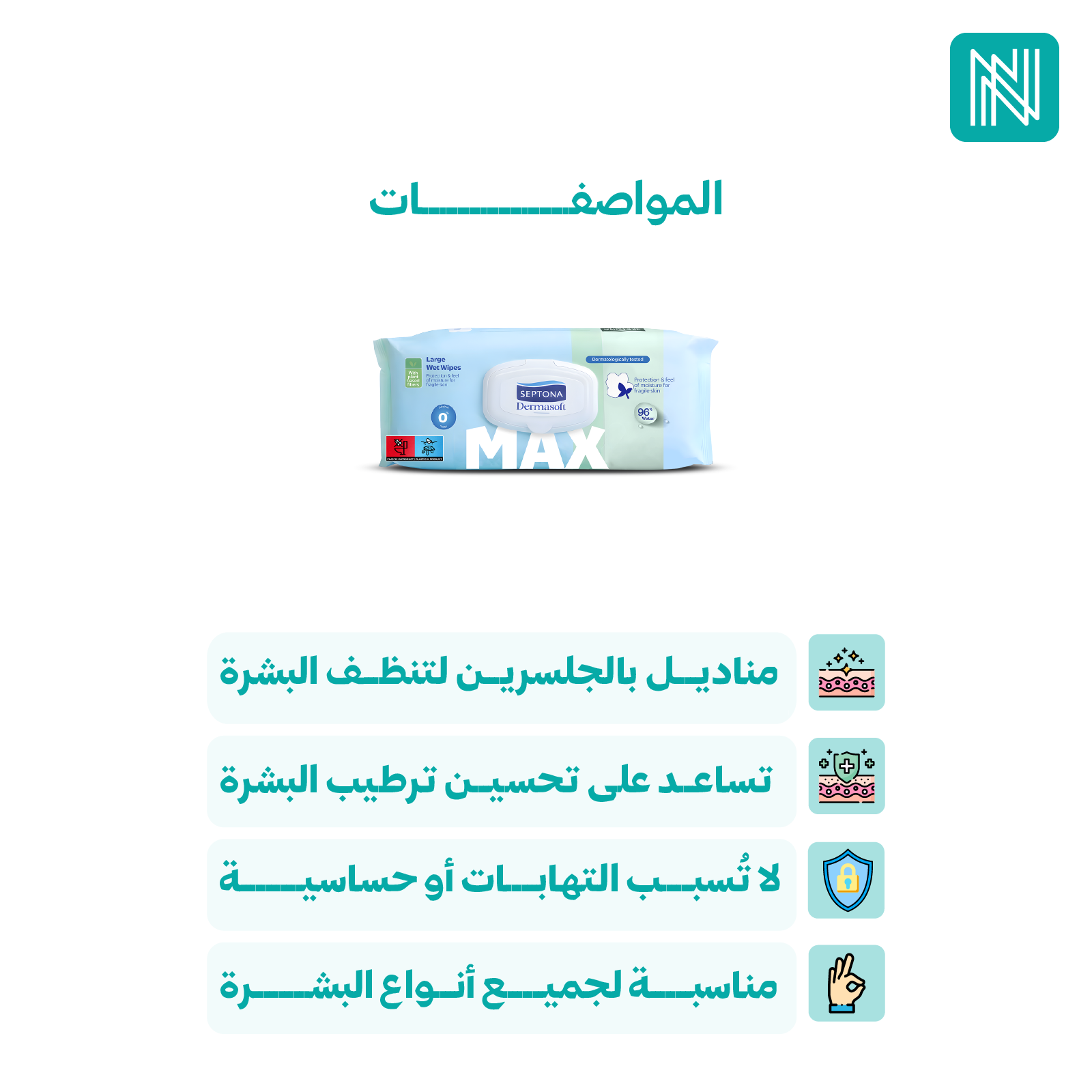 مناديل مبللة ماكس بالجلسرين - سبتونا (60 منديل)