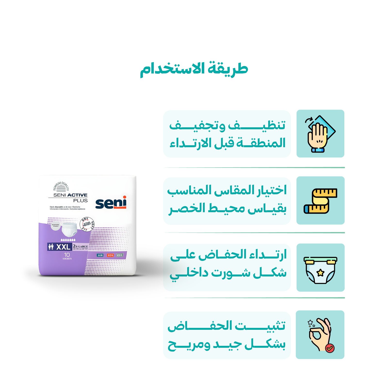 4- تأكد من أن الحفاض الشورت قد ثُبِّتَ بشكل جيد وأنه يتناسب مع جسم الشخص بشكل مريح.