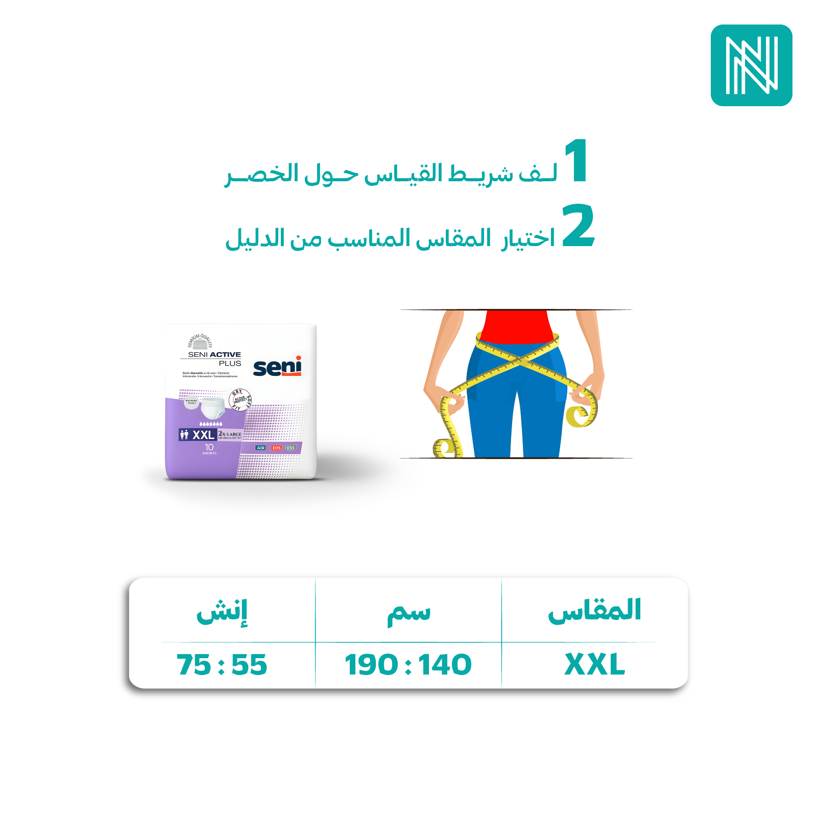 2- تأكد من اختيار المقاس المناسب للحفاض الشورت، وذلك بقياس محيط الخصر ومقارنته بجدول المقاسات المتاحة.