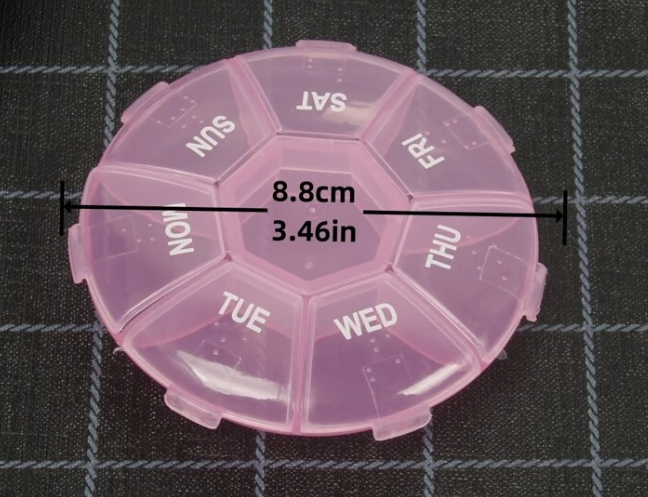 - 7 أقسام أسبوعية: مثالي لتخزين جرعات الأدوية اليومية لسبعة أيام، مما يضمن الحفاظ على ترتيب الأدوية.