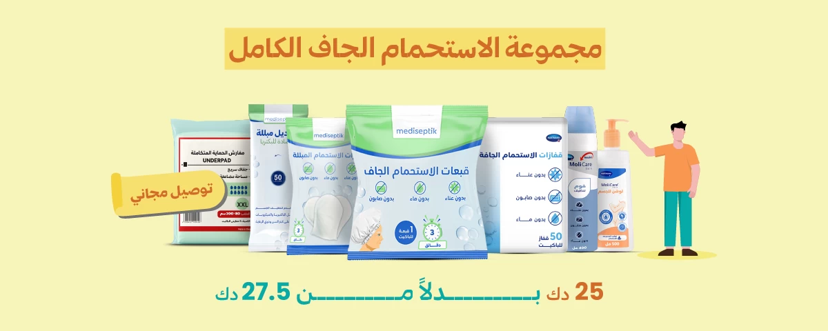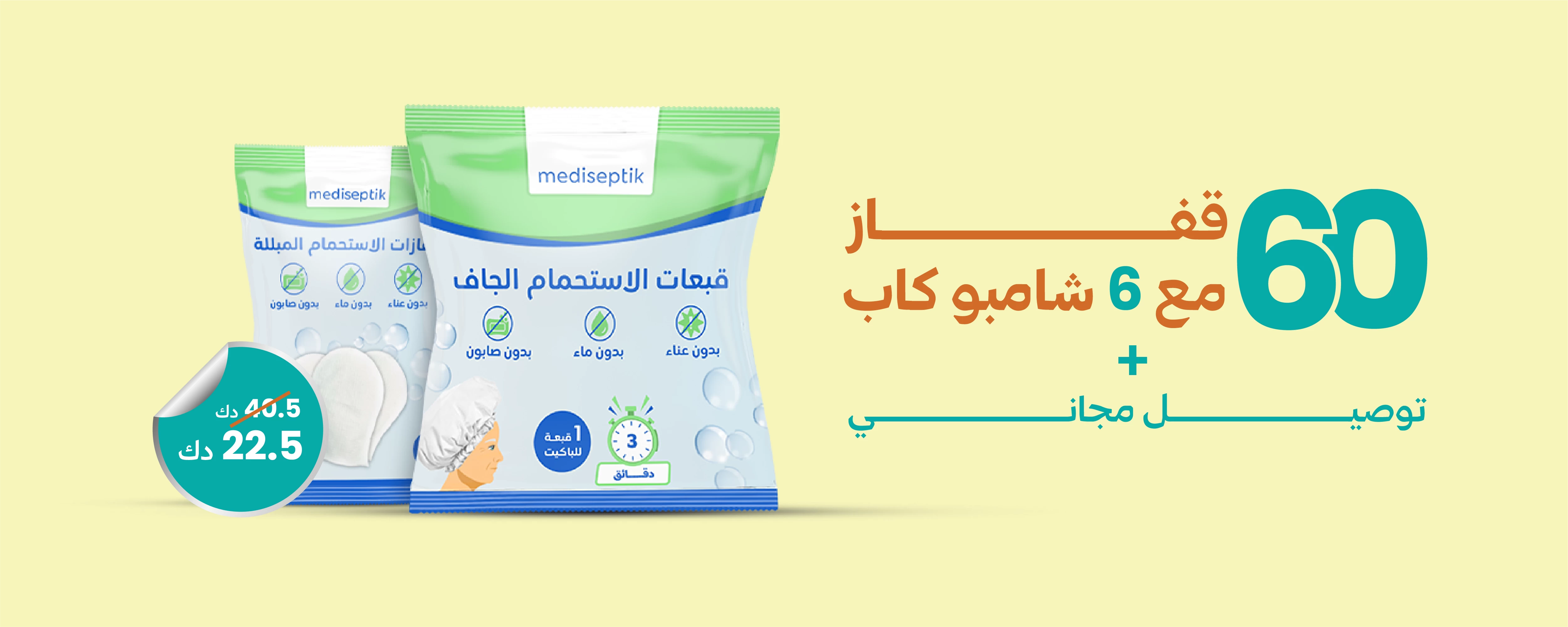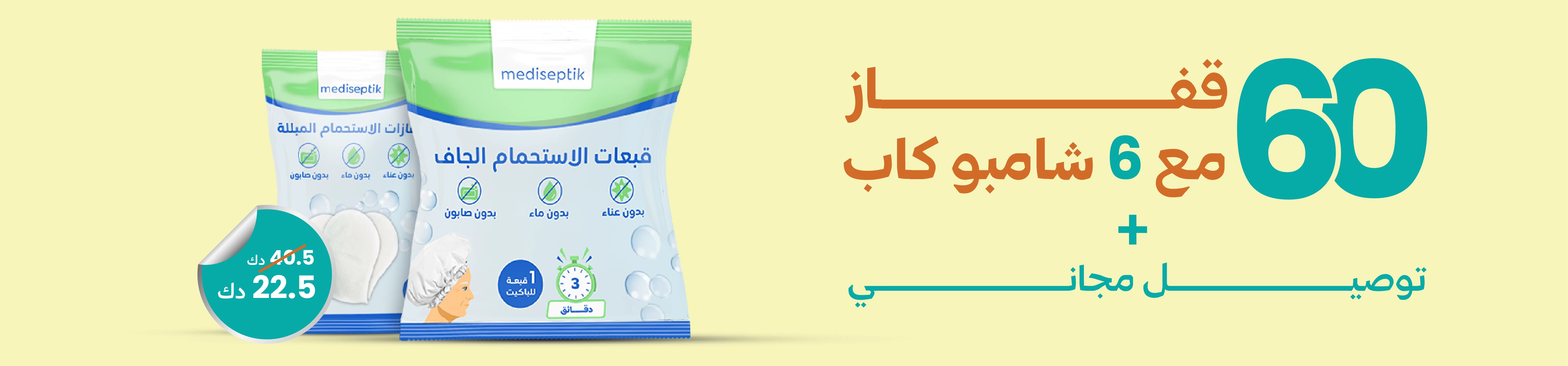 عرض الاستحمام الجاف ( قفازات الاستحمام المبللة + شامبو كاب)