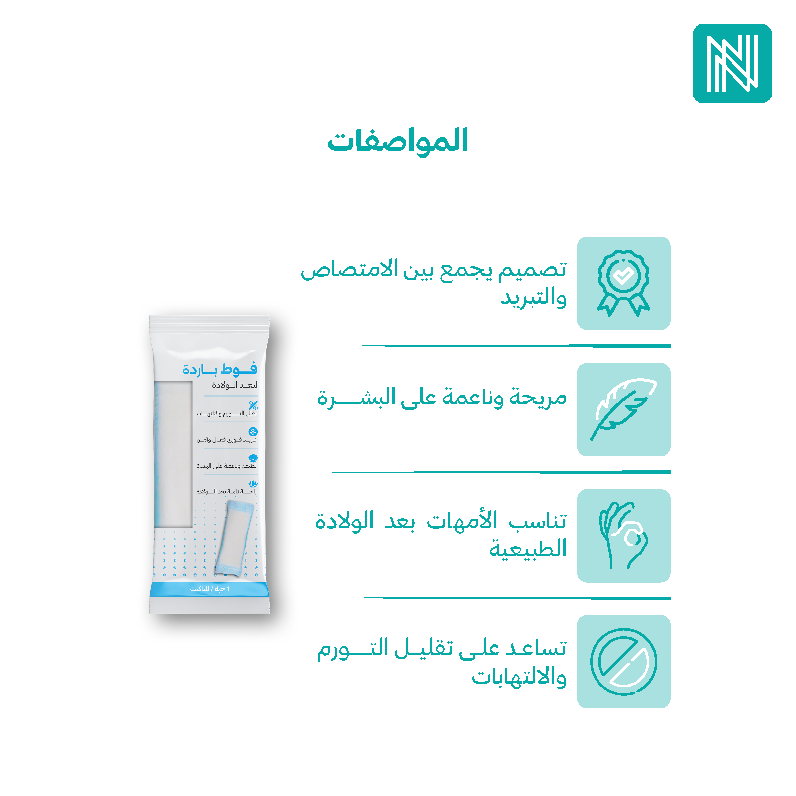 تم تصميم هذه الفوط المبتكرة خصيصًا لتلبية احتياجات الأم بعد الولادة الطبيعية، حيث توفرضغط بارد ونسبة امتصاص للسوائل.