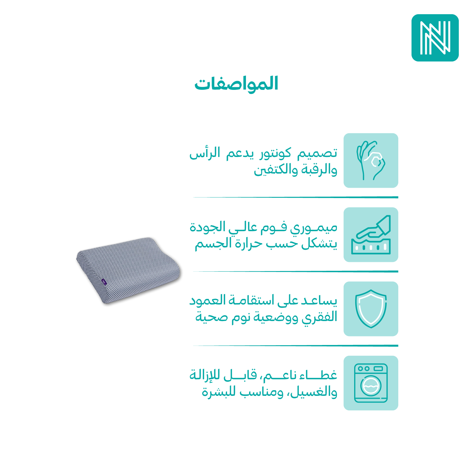 - تصميم كونتور مريح يدعم الرأس والرقبة والكتفين.
