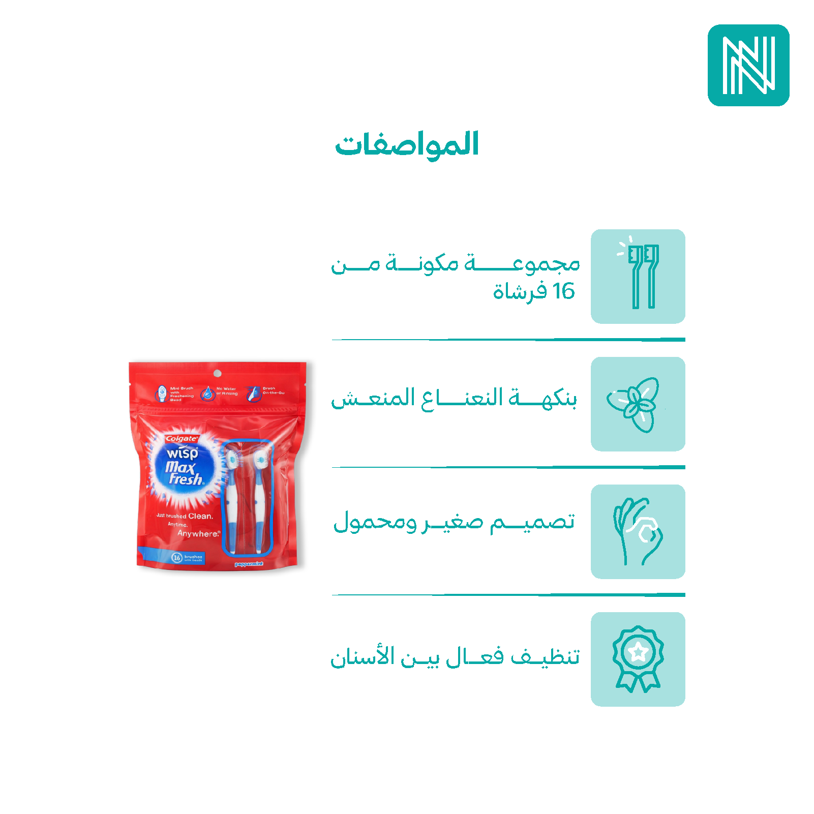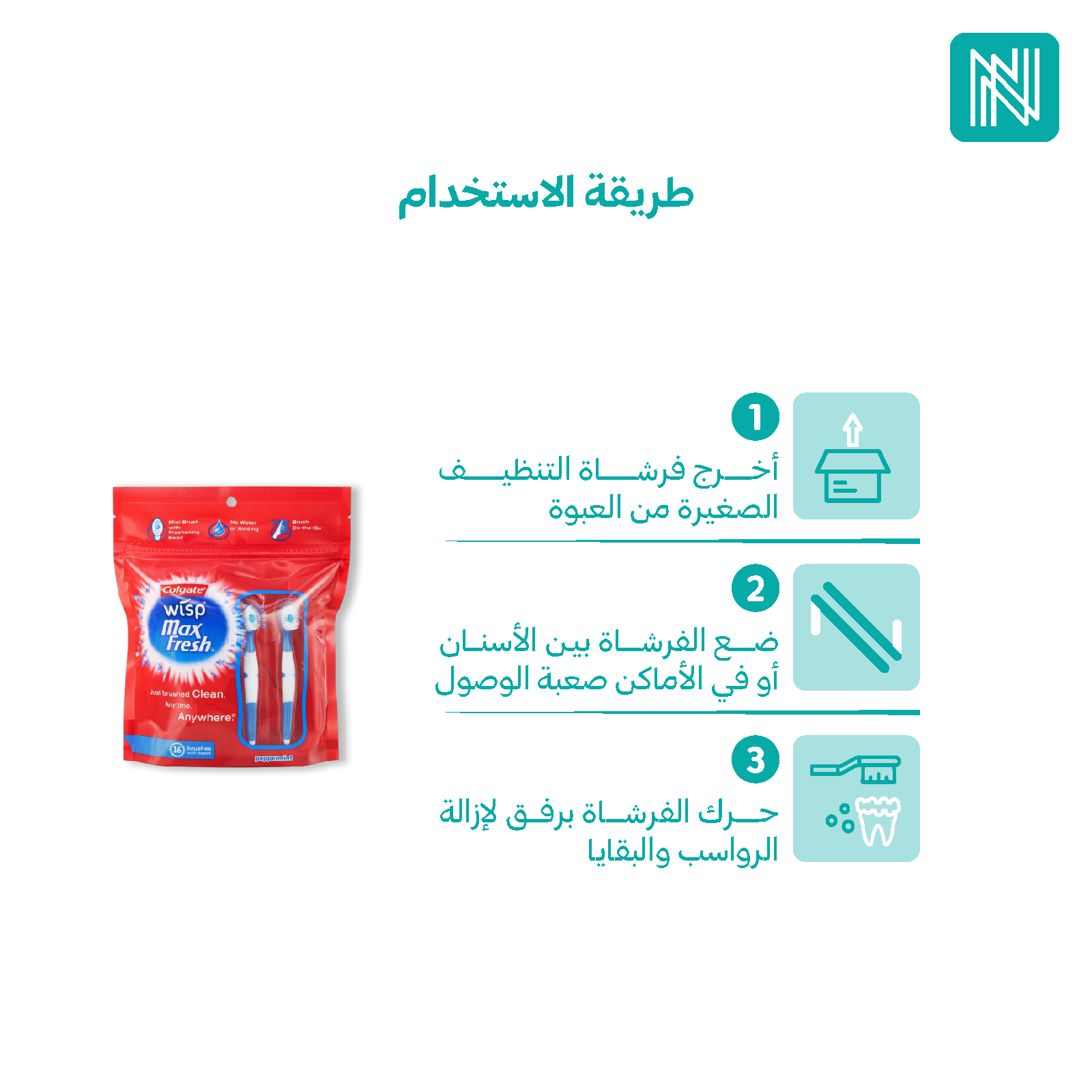 استمتع بنظافة فورية وفم منتعش في أي وقت مع مجموعة فرش التنظيف الصغيرة من كولجيت بنكهة النعناع. مصممة للاستخدام الواحد لتوفير تنظيف سريع وفعال للأماكن التي يصعب الوصول إليها بعد الأكل أو أثناء التنقل، دون الحاجة لمعجون أسنان أو ماء.