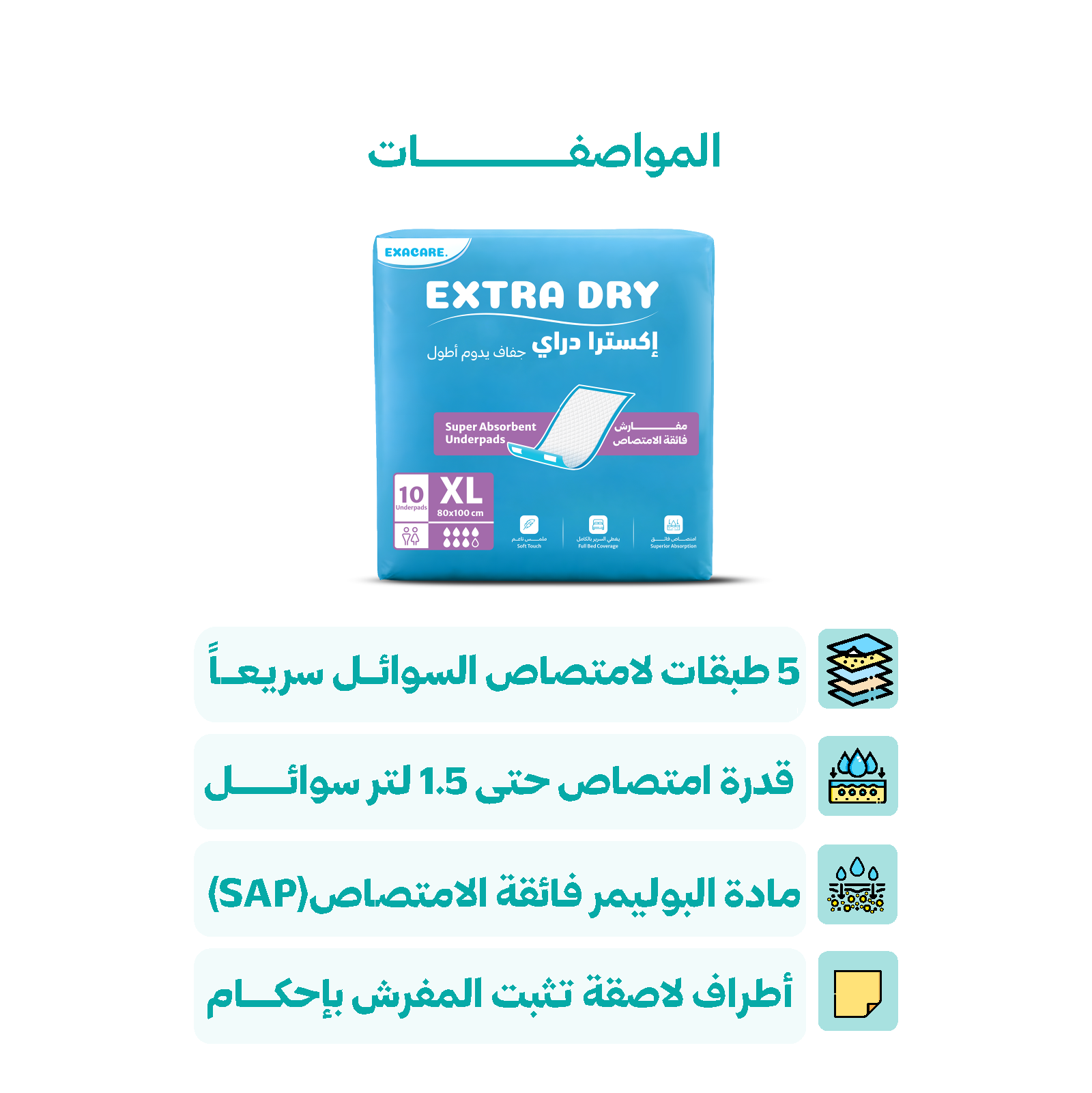 مفارش لاصقة فائقة الامتصاص - اكس لارج