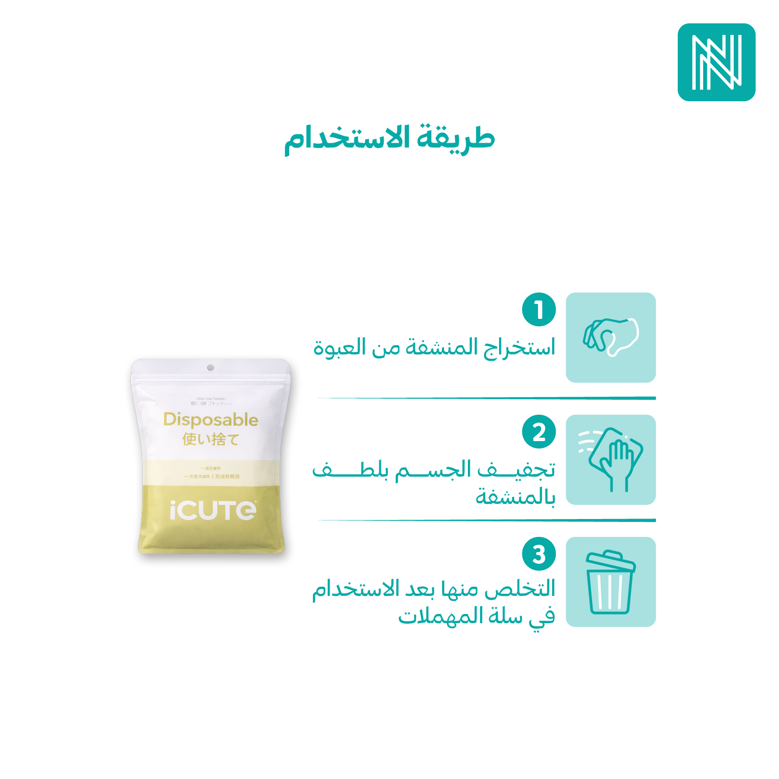احصل على تجفيف فوري للجسم والوجه مع فوط الاستحدام مرة واحدة التي تحميك من العدوى ومعك في كل مكان.