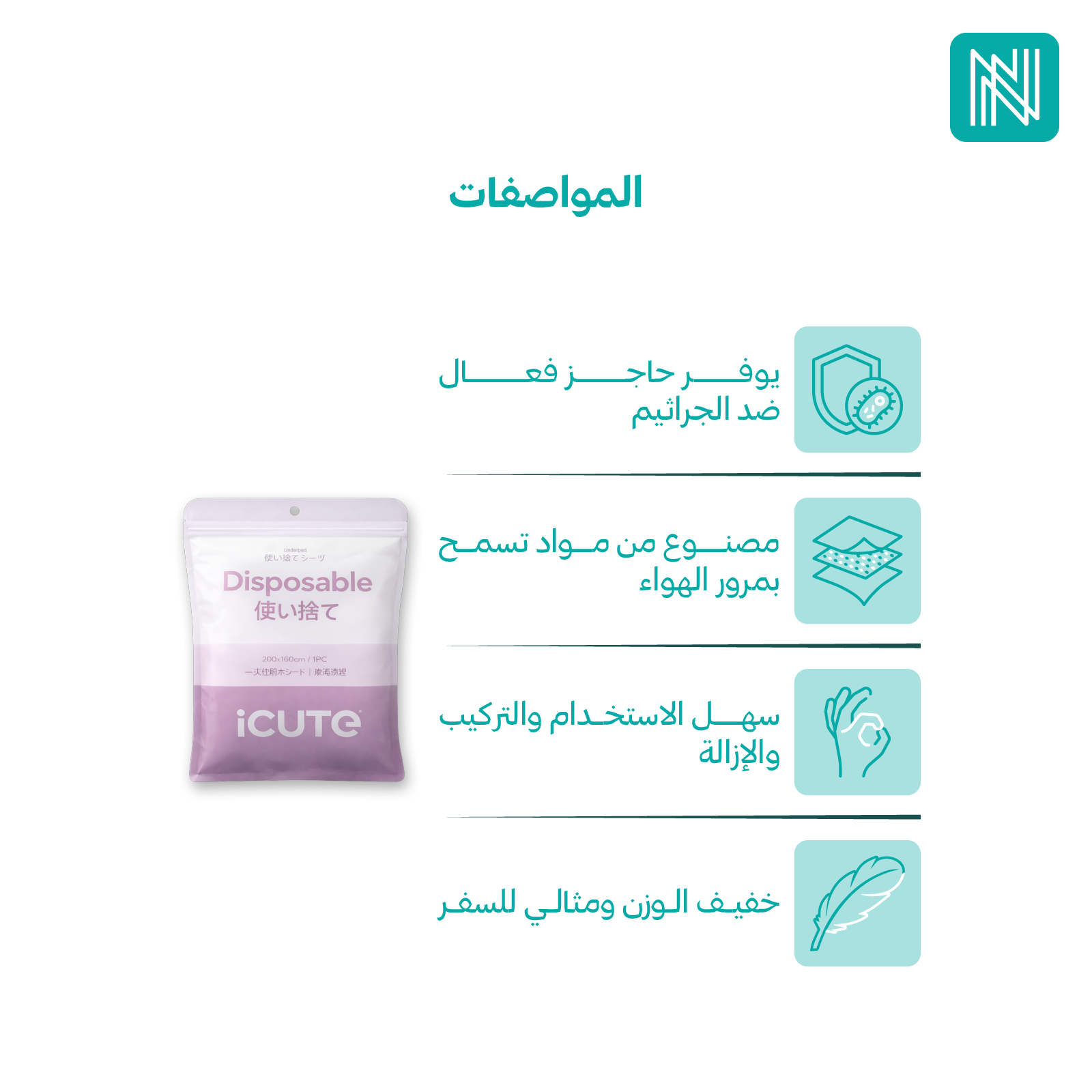 - المادة: قماش غير منسوج، متين وقابل للتنفس