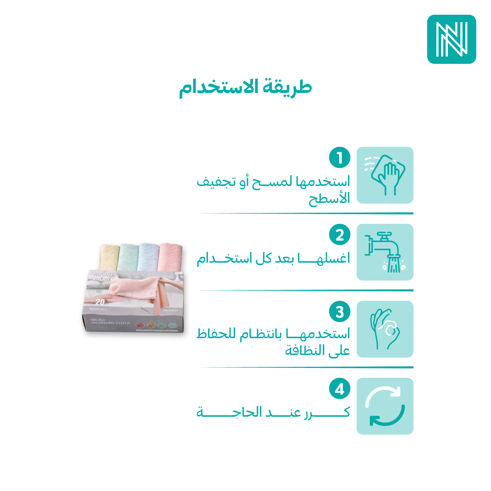 3- كرري الاستخدام حسب الحاجة لضمان تنظيف مثالي.