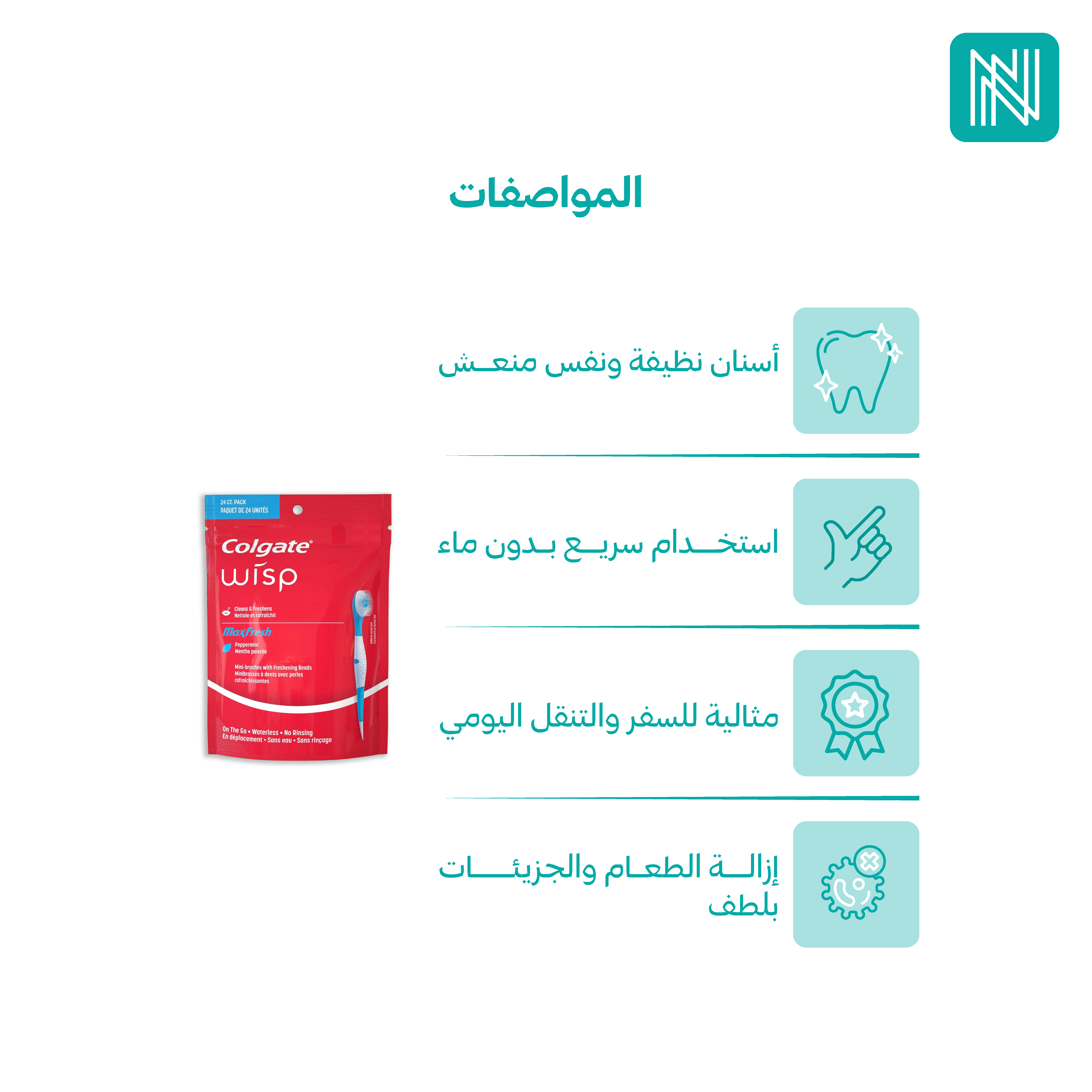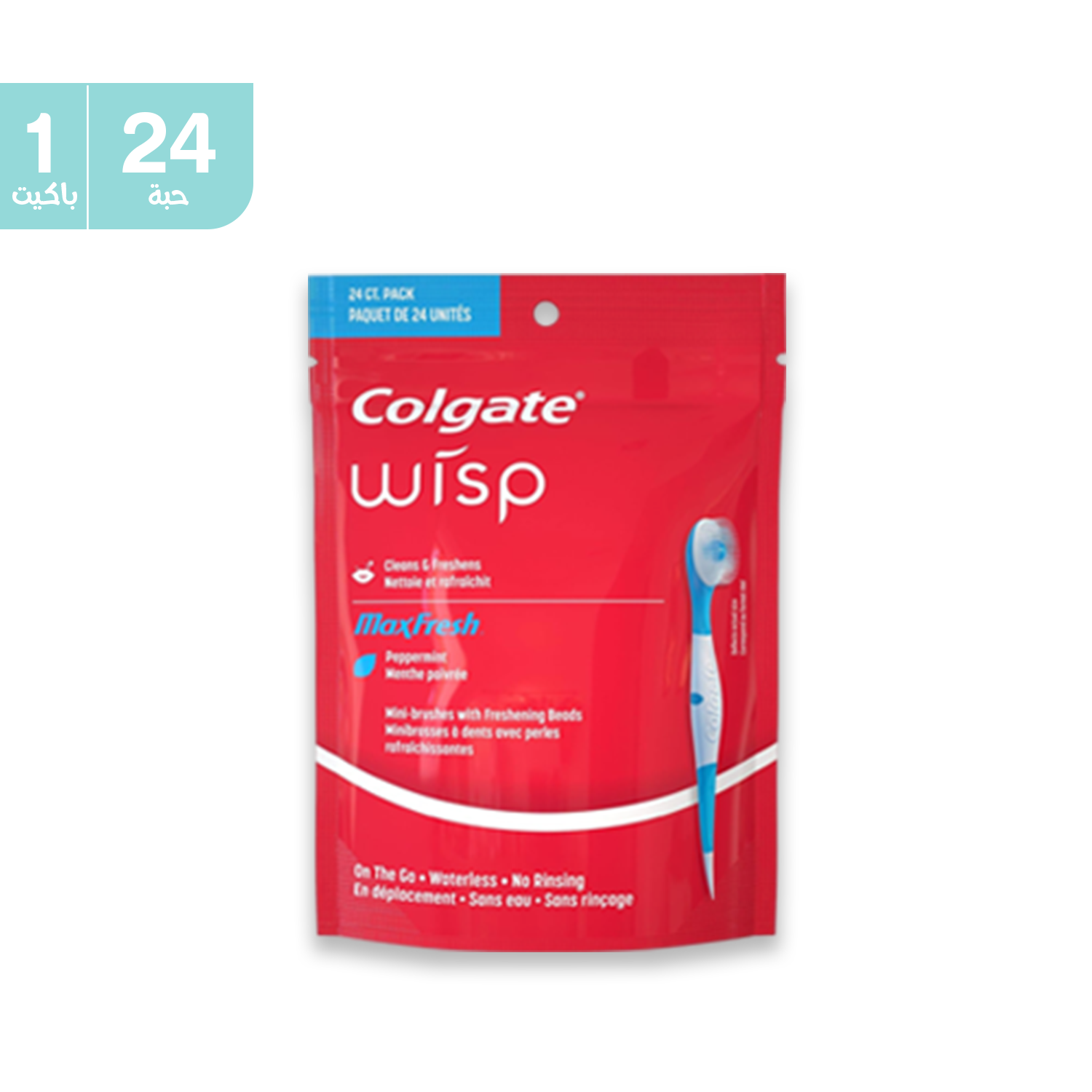 احصل على أسنان نظيفة ونفس منعش في أي وقت بدون ماء مع فرشاة كولجيت الصغيرة بنكهة النعناع المنعشة للاستخدام مرة واحدة.