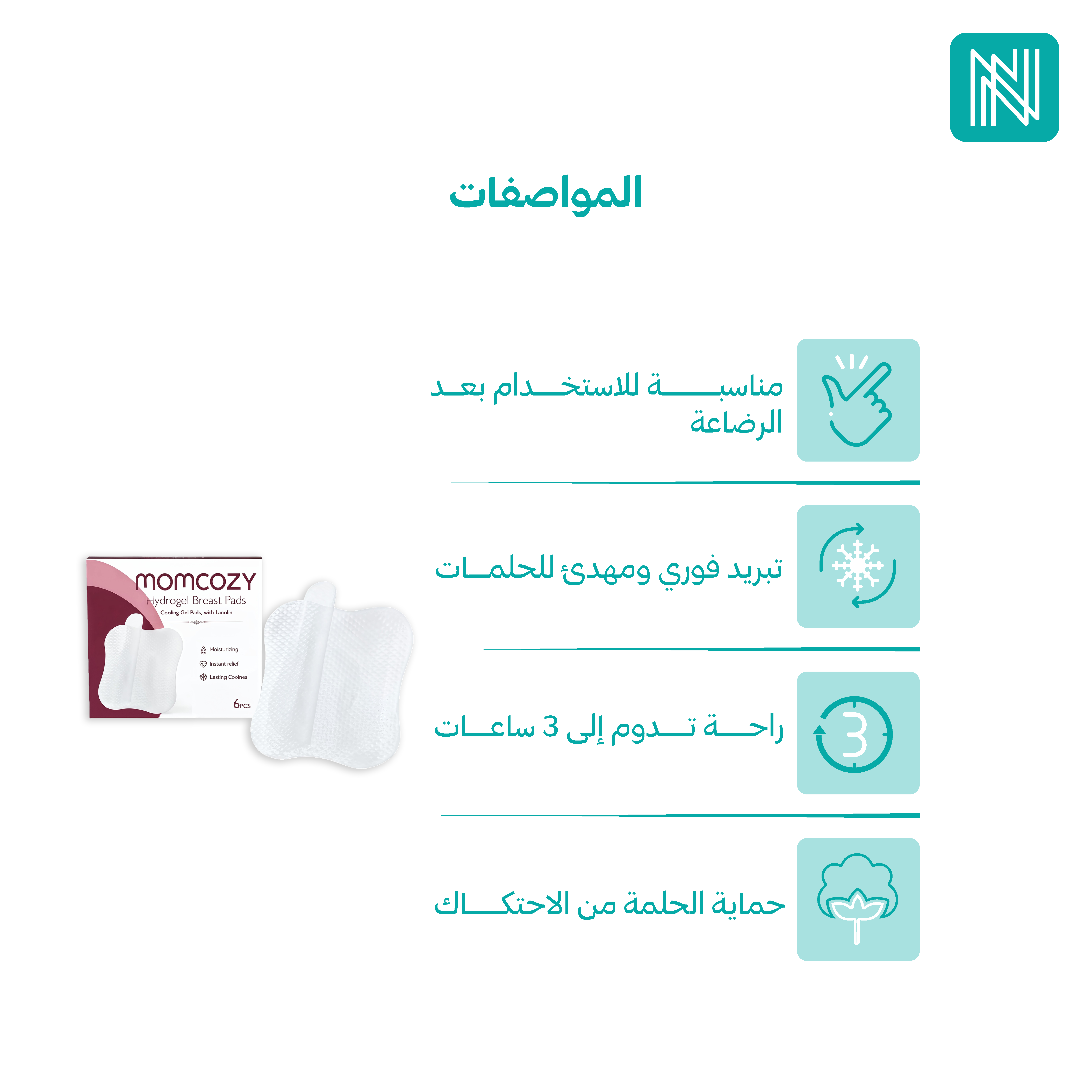 - تبريد فوري ومهدئ للحلمات بعد الرضاعة.