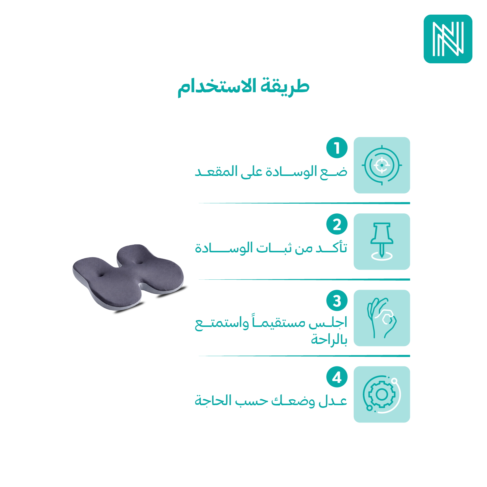 1- ضع الوسادة على المقعد بشكل مستوٍ