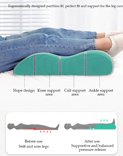 استمتع براحة مثالية واسترخاء تام مع وسادة رفع الساقين، المصممة لدعم الساقين وتحسين الدورة الدموية وتقليل التورم، لتمنحك نومًا أكثر راحة وصحة.