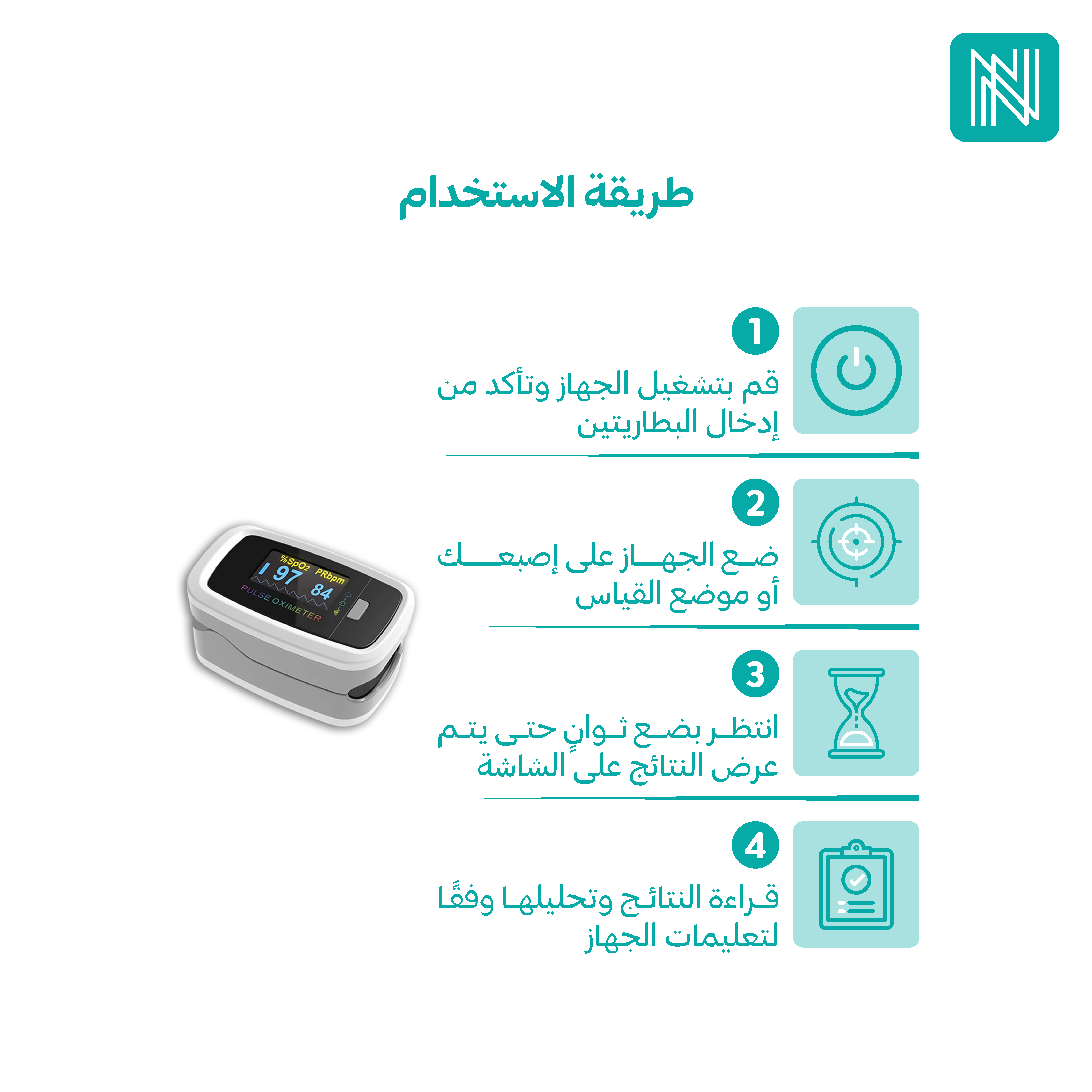 - وضع الجهاز على إصبعك أو موضع القياس المناسب بناءً على نوع القراءة التي ترغب فيها.