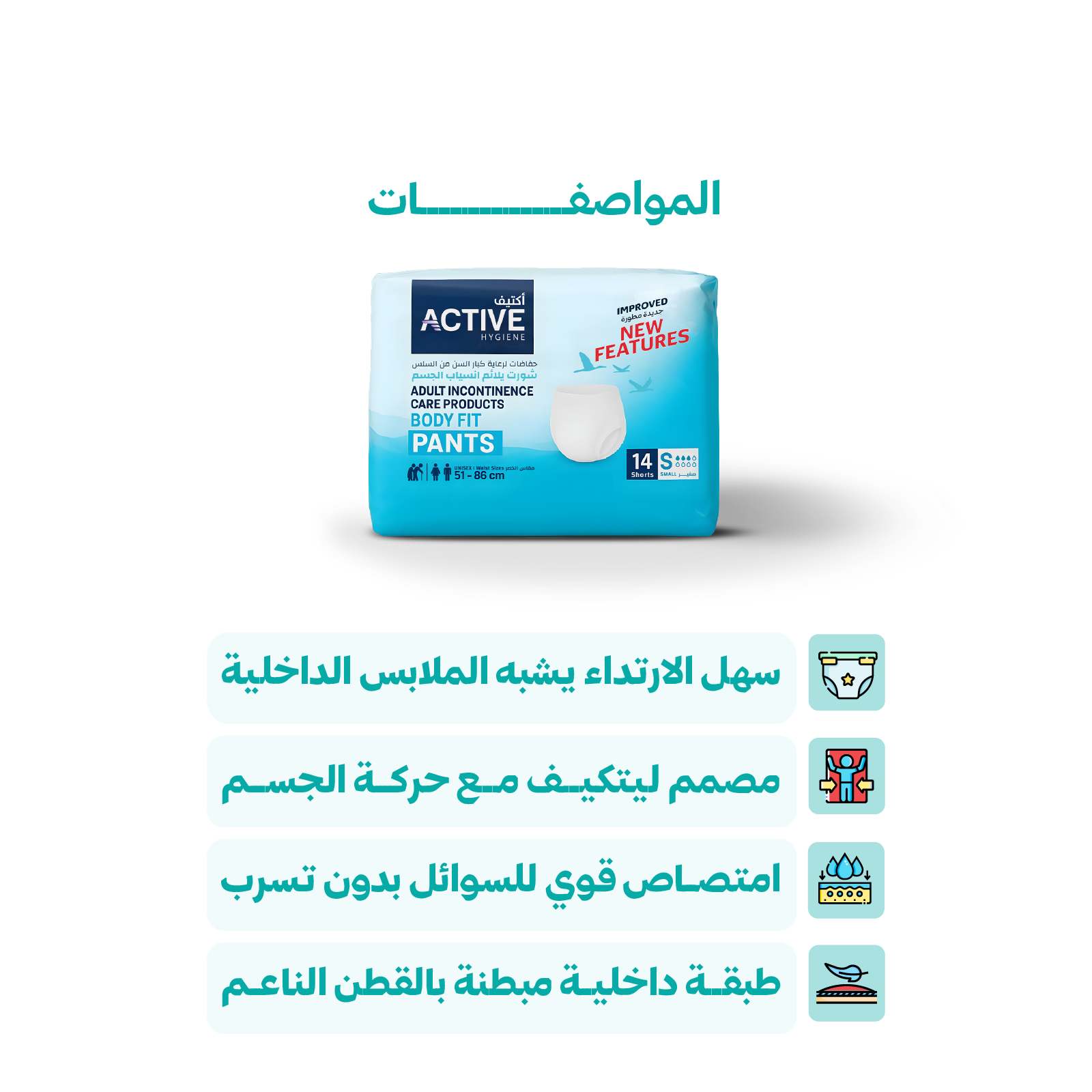 استمتع بحماية فائقة وجفاف مثالي مع حفاض شورت كبار السن من أكتيف.