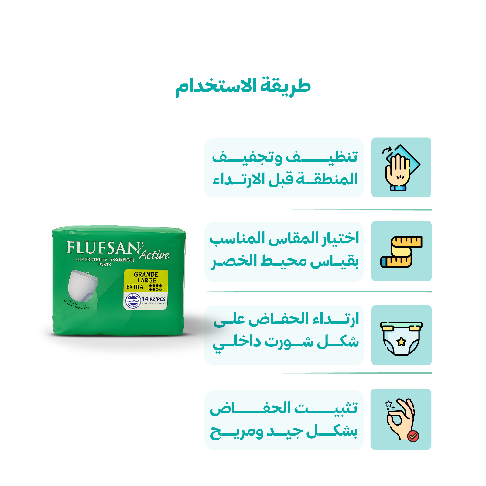 3- يجب ارتداء الحفاض مثل الملابس الداخلية العادية.