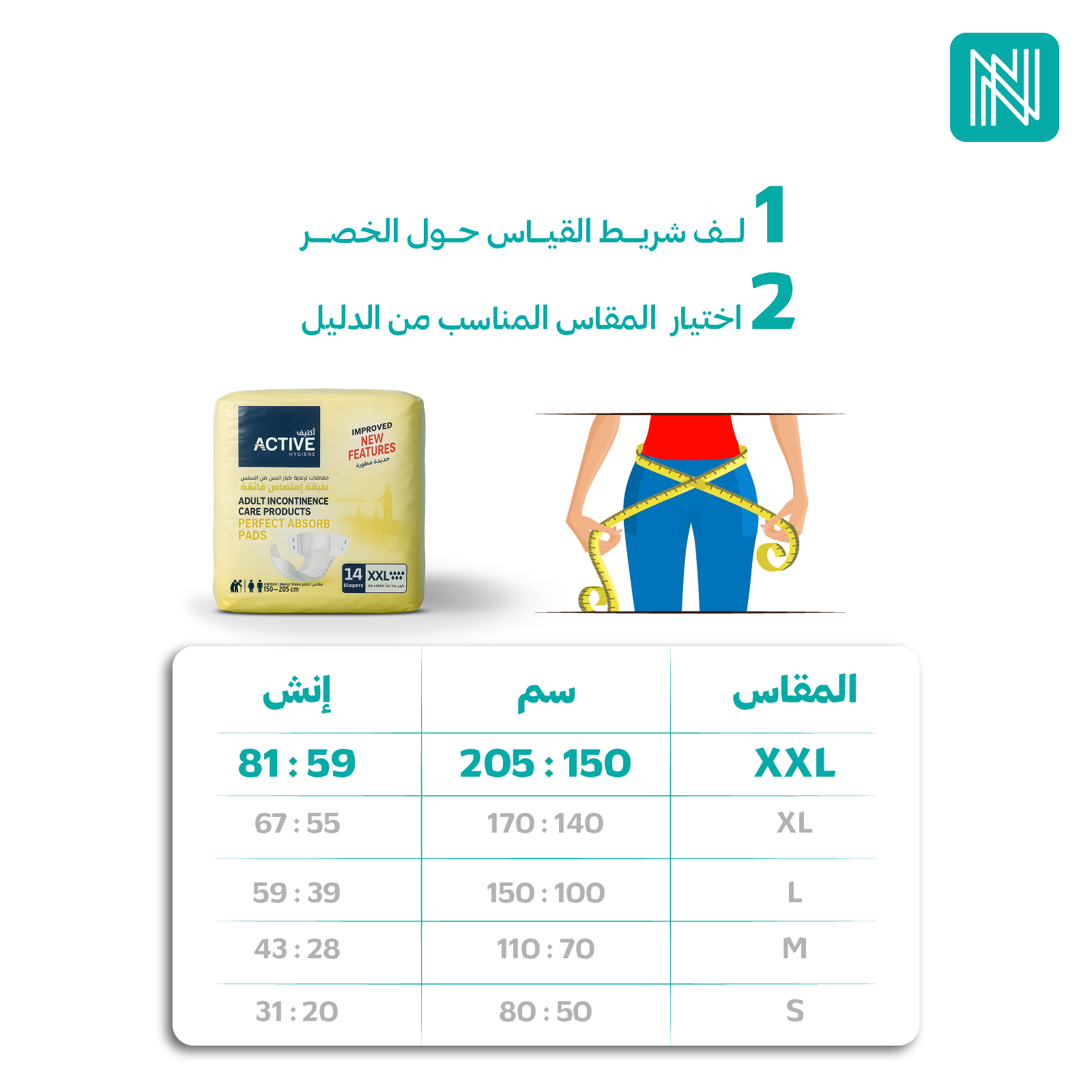 حفاض لاصق كبار السن دبل اكس لارج - أكتيف 0.000 KD
