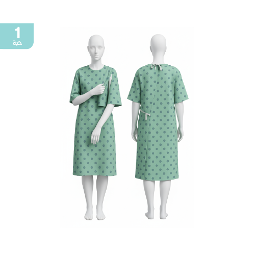 - مفتوح من اعلى الكتف والأكمام بأزرار: تسهل الوصول إلى الوريد دون الحاجة لخلع الروب بالكامل.