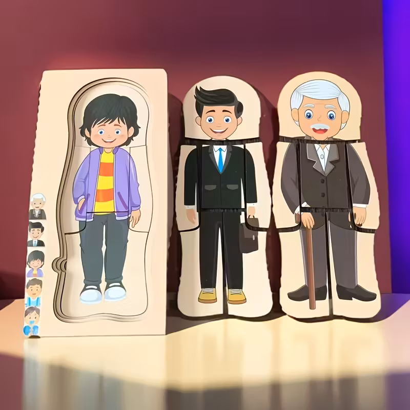 صممت لمساعدة الأطفال على تصور مراحل النمو (مثل التحول من رضيع إلى طفل) إنها هدية تعليمية مثالية تجعل التعلم عن دورات الحياة والتطور الشخصي ممتعًا.