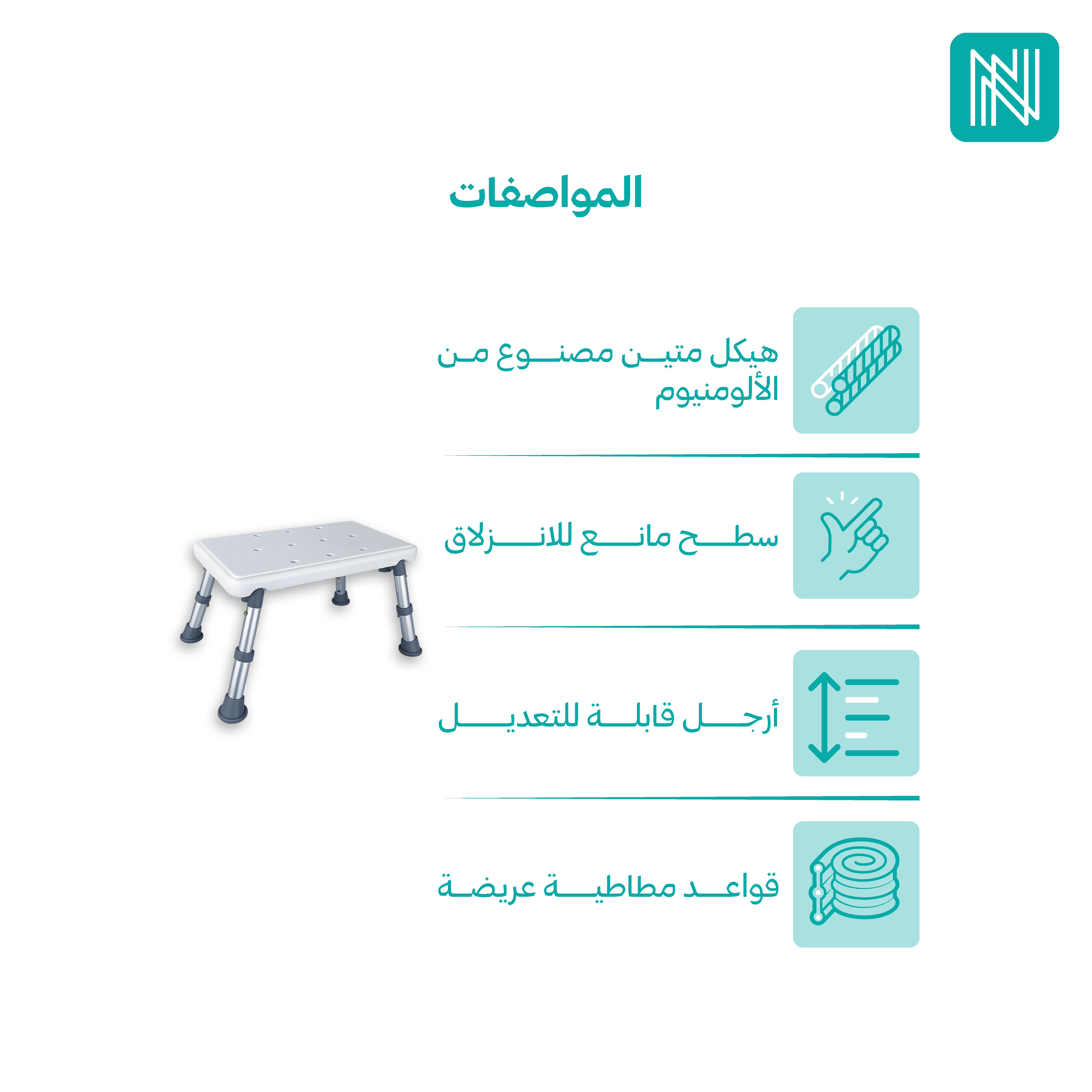 مسند قدم طبي درجة واحدة مصمم لتوفير الثبات والدعم الإضافي للوصول إلى الأماكن المرتفعة بأمان أو لاستخدامه كدعامة للقدم أثناء الاستحمام والجلوس.