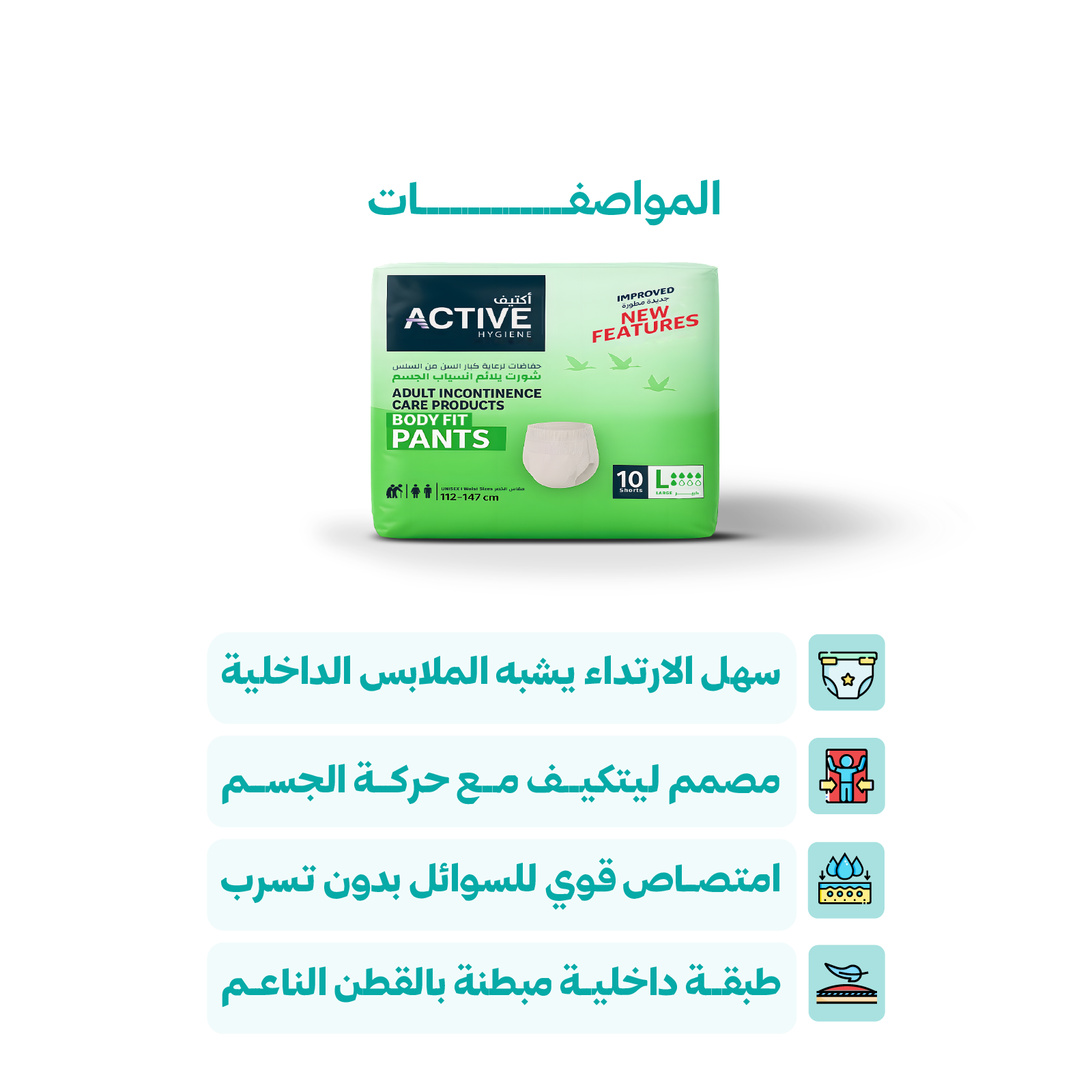 استمتع بحماية فائقة وجفاف مثالي مع حفاض شورت كبار السن من أكتيف.
